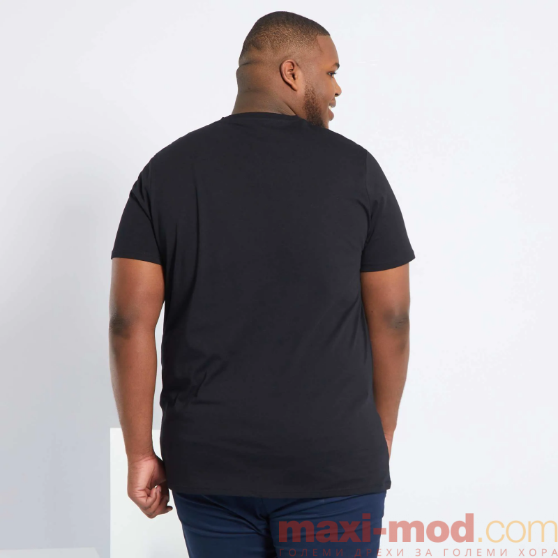 Голям размер мъжка черна тениска. Подходяща за ежедневието и свободното време.