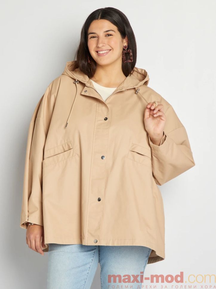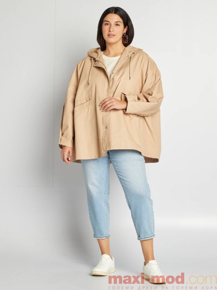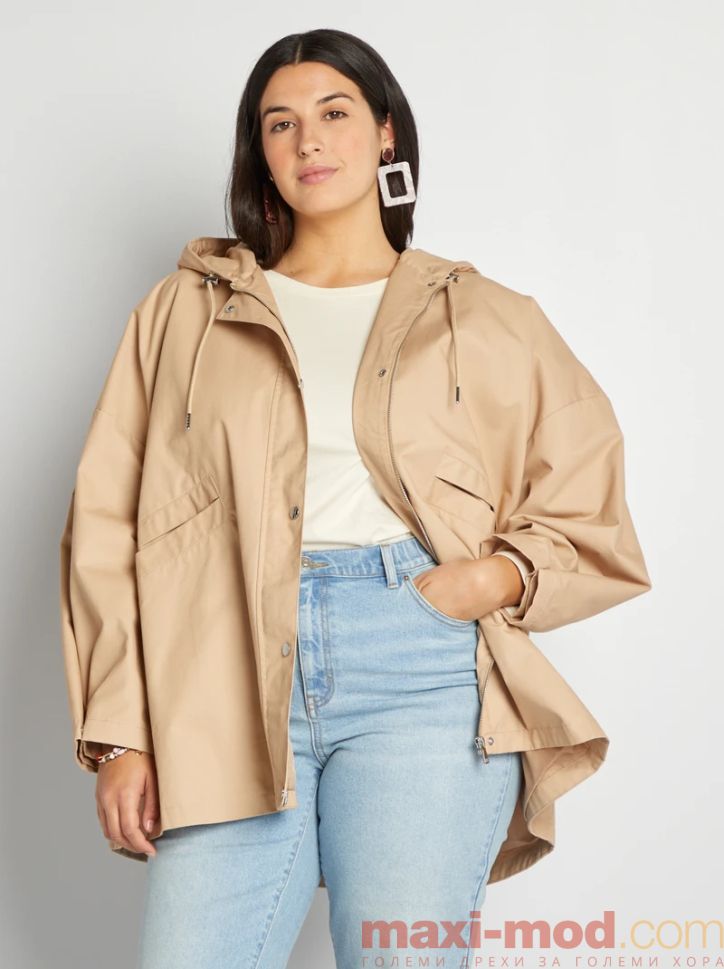 Дамско яке с качулка голям размер. Подходящо за ежедневието и свободното време.