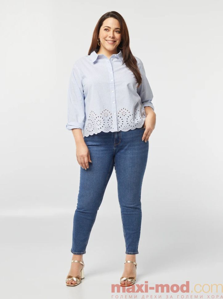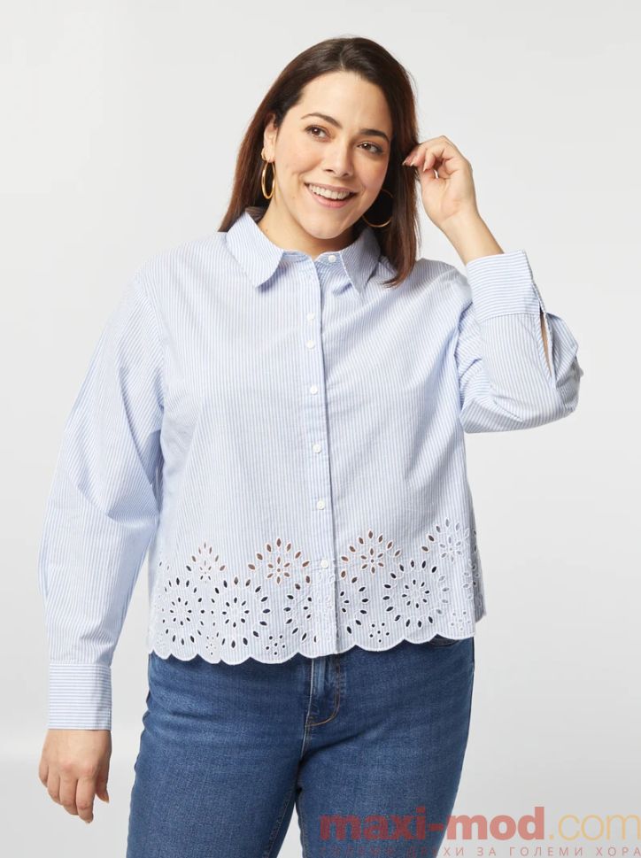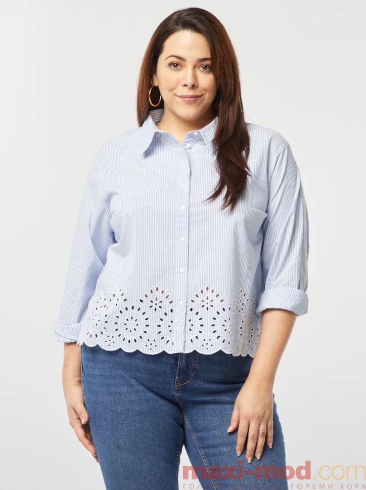 Раирана риза с ажурна бродерия . Подходяща за ежедневието и свободното време.