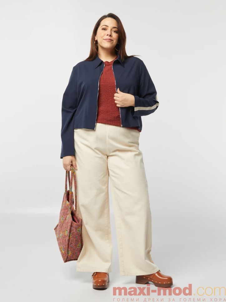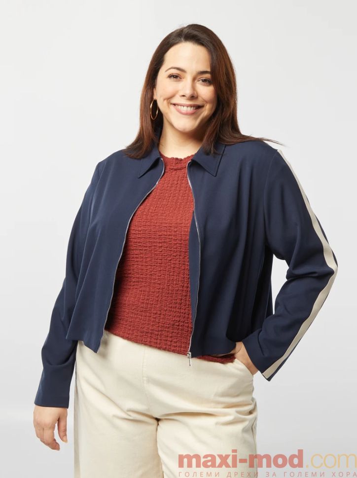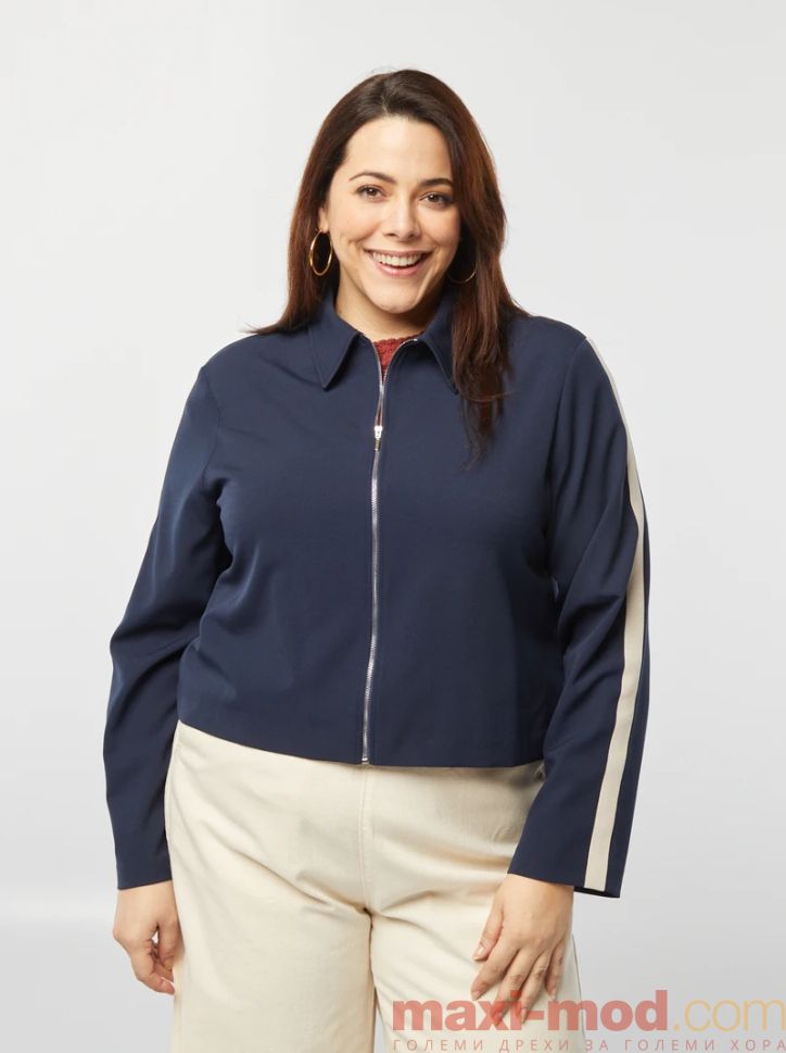 Дамско късо яке с цип и широка яка . Подходящо за ежедневието и свободното време.