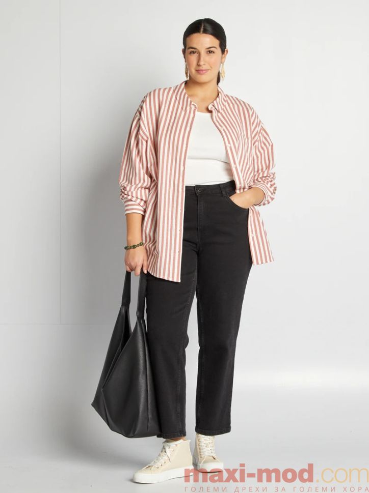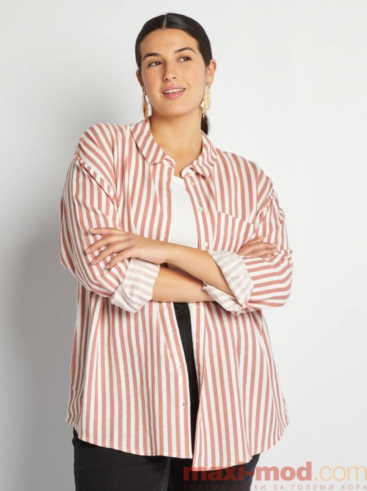 Дамска ленена риза голям размер. Подходяща за ежедневието и свободното време.