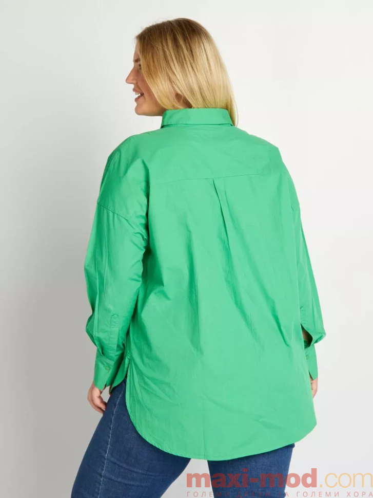 Моделът е с класическа яка, дълги ръкави и закопчаване с копчета по цялата дължина. Свободната кройка гарантира удобно прилягане и стилна визия, подходяща както за ежедневието, така и за по-елегантни поводи. Свежият зелен цвят придава настроение и лесно се комбинира с дънки, панталон или пола.