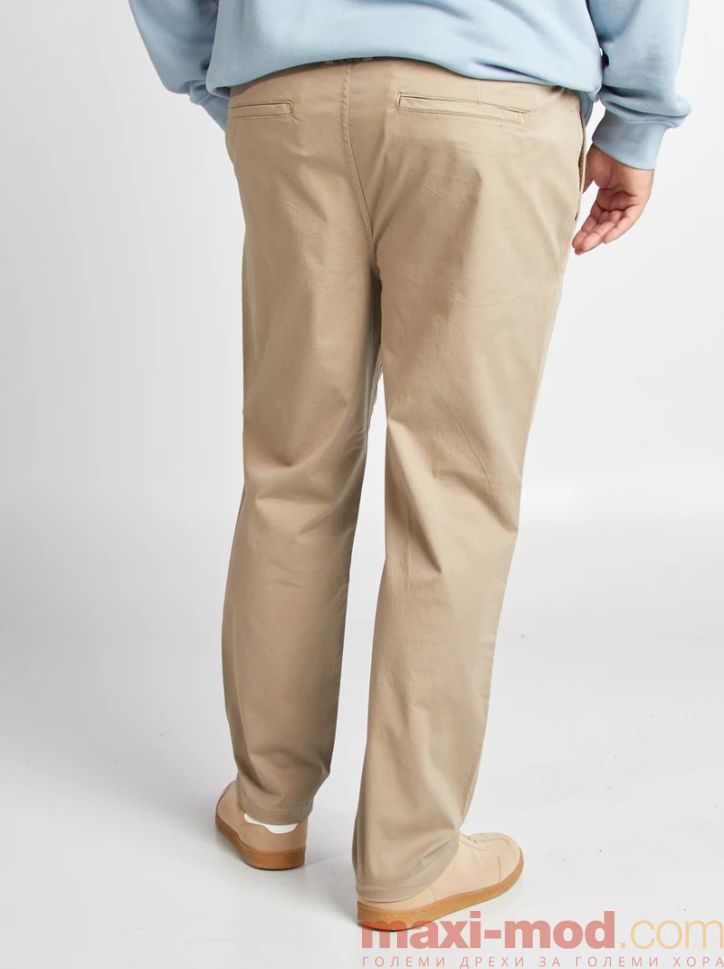 👖 Мъжки панталони в бежов цвят – до 70-ти размер Класически и удобни мъжки панталони, проектирани специално за мъже с по-едра фигура. Изработени от мека и устойчива памучна материя с лека еластичност, която осигурява комфорт и свобода на движение през целия ден.