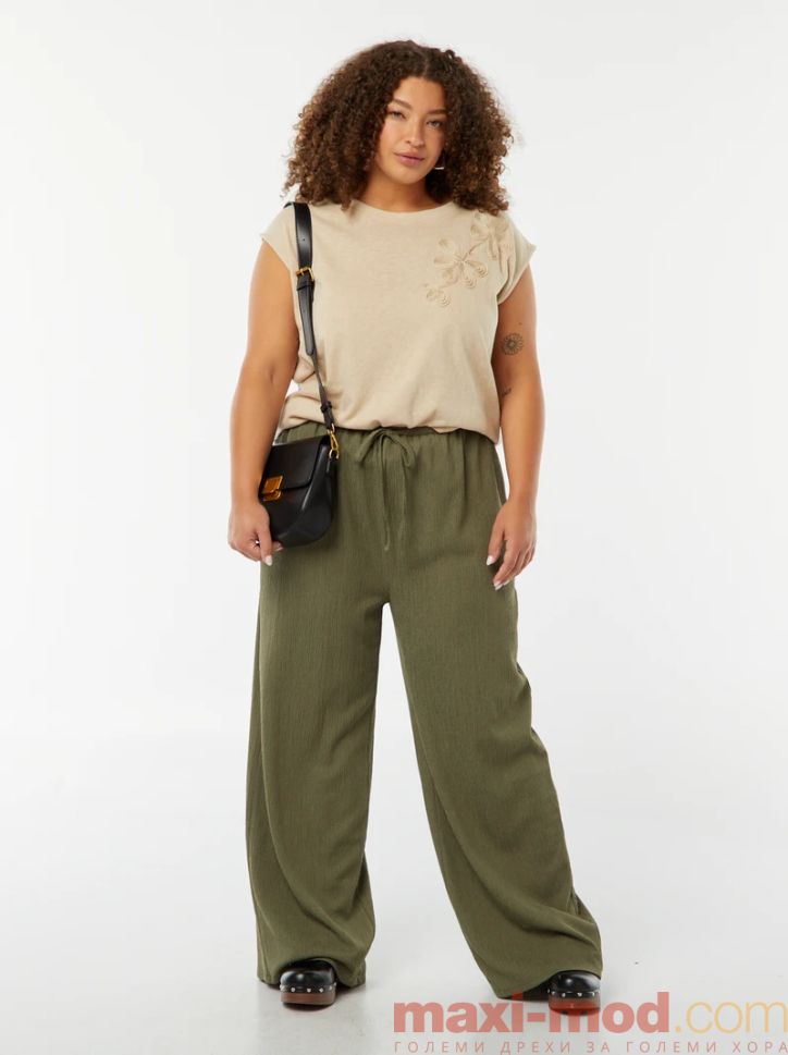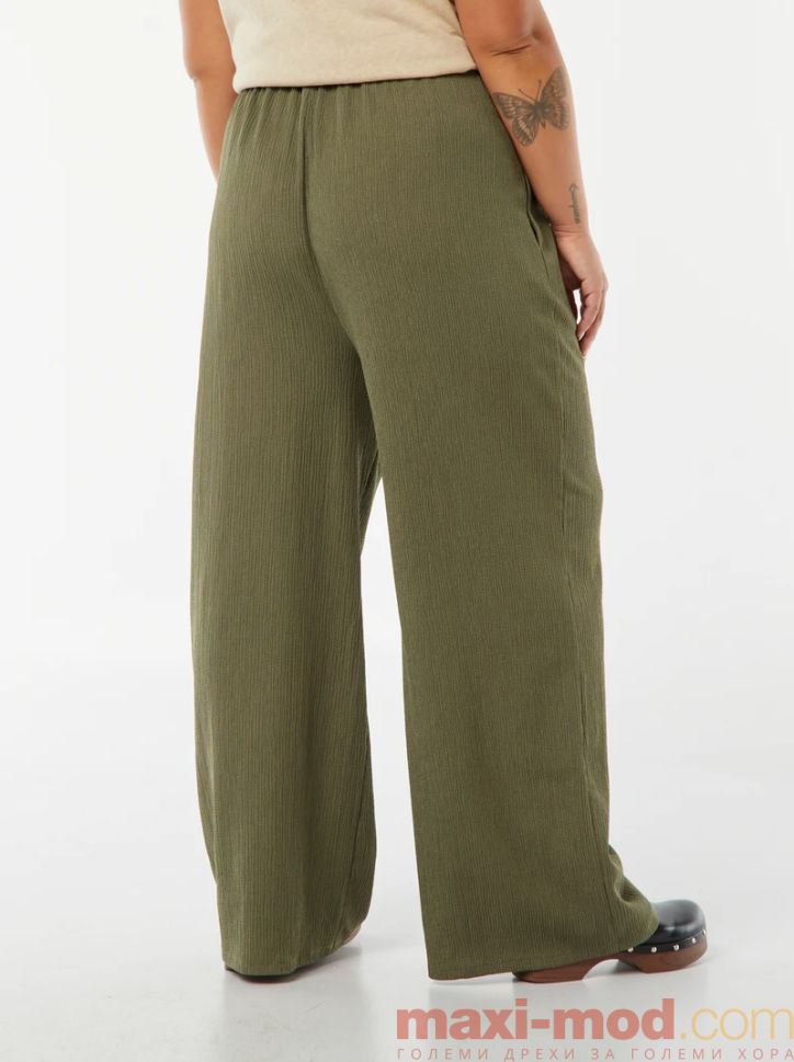 Широки плисирани панталони. Подходящ за ежедневието и свободното време.