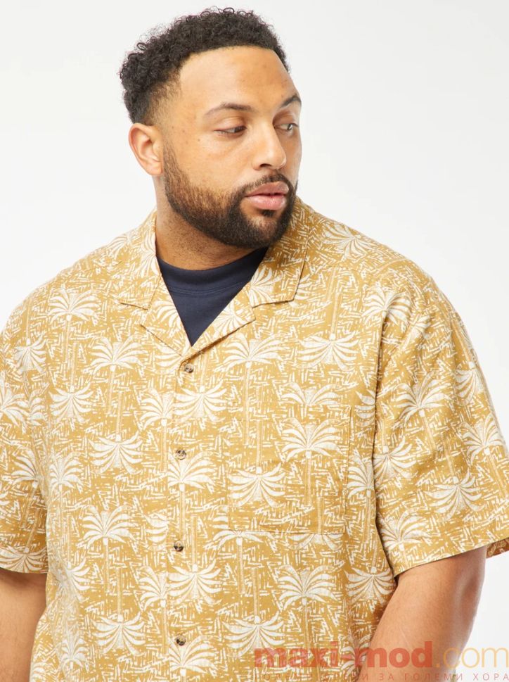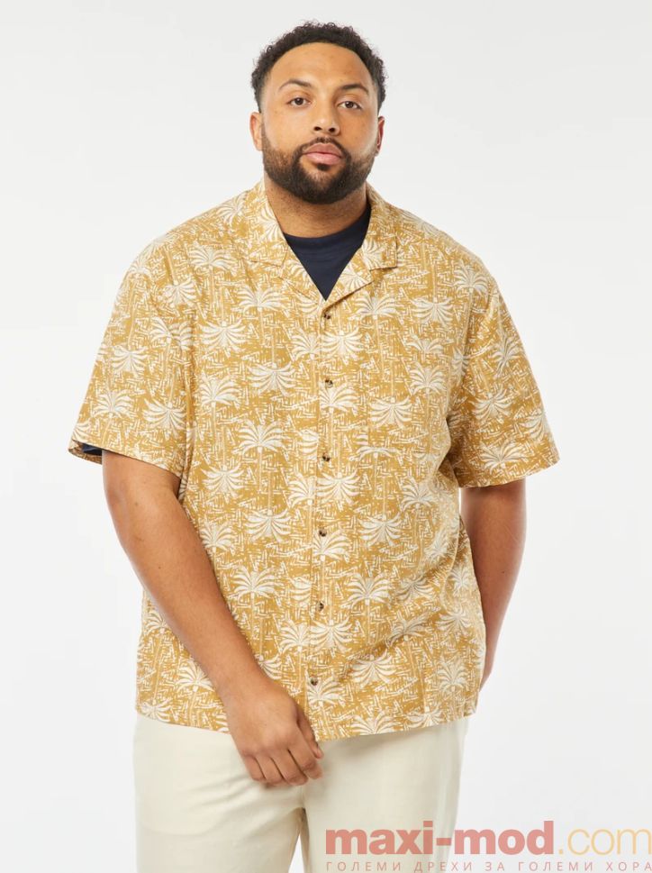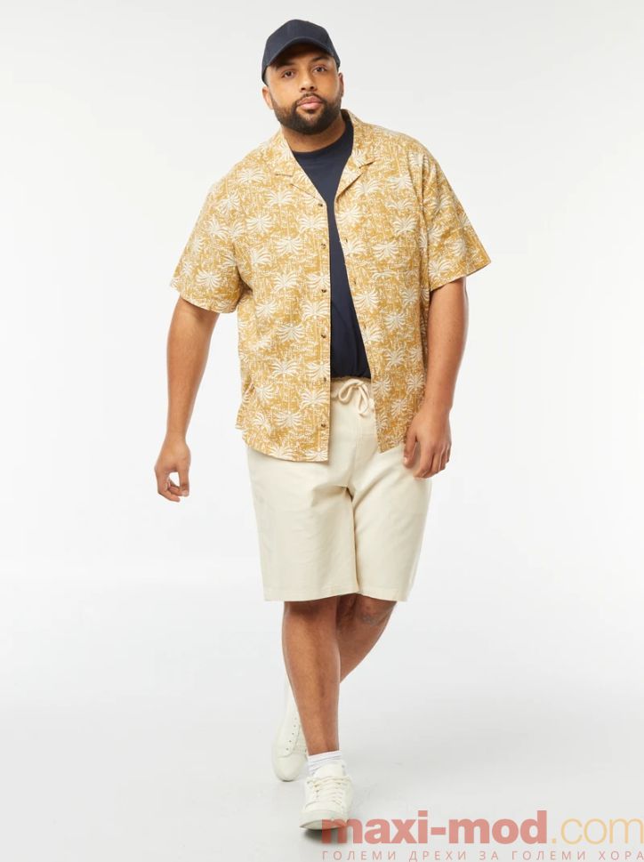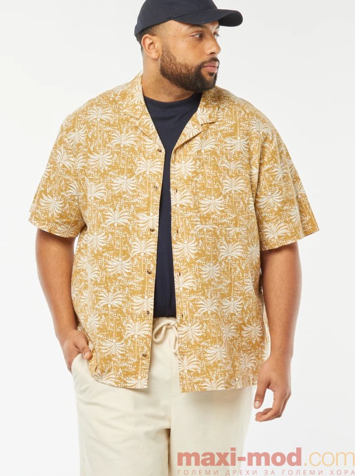 Ленена риза с къс ръкав голям размер. Подходяща за ежедневието и свободното време.