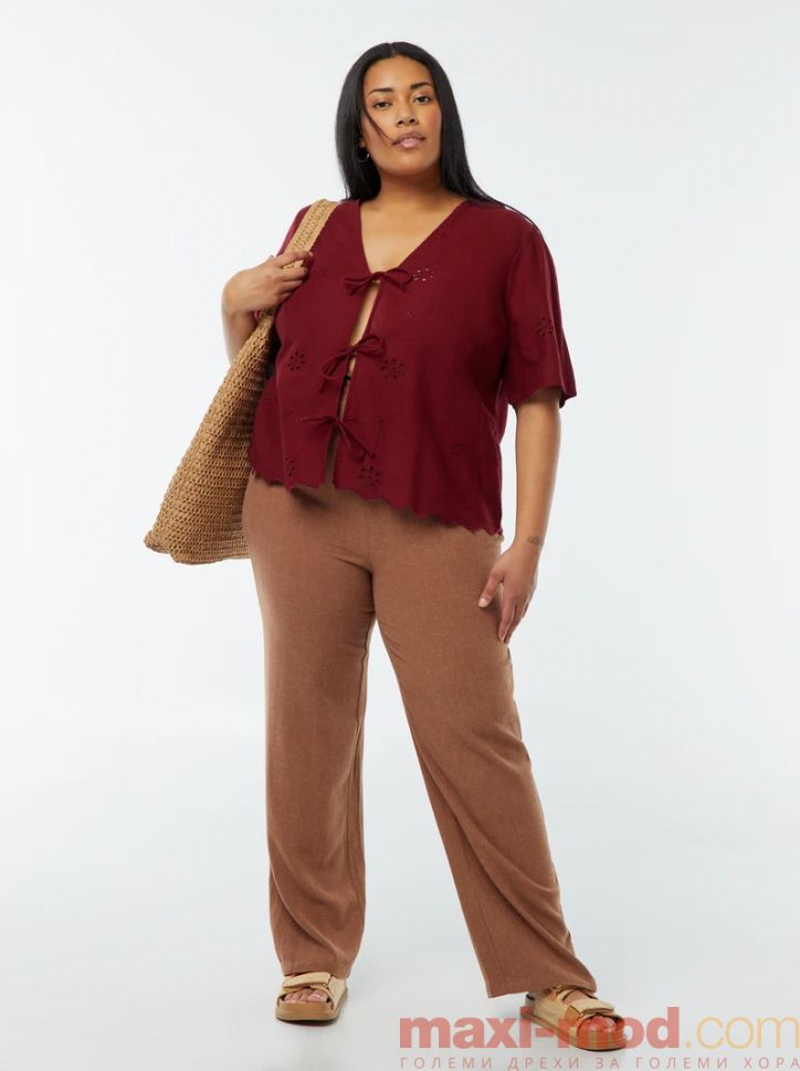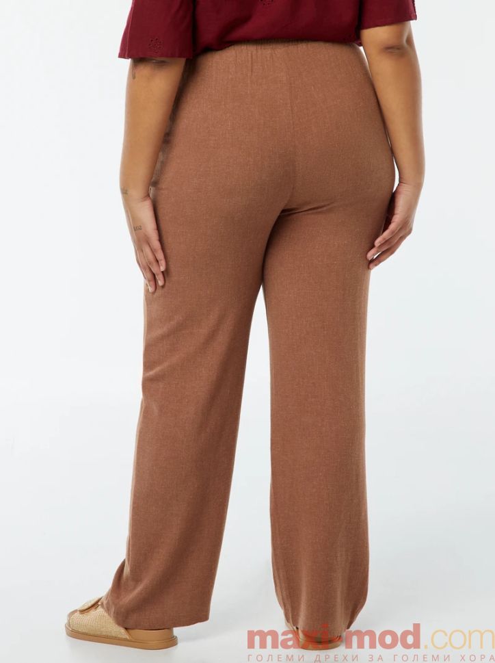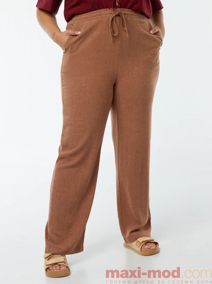 Прав ленен панталон с ластик на талията. Подходяща за ежедневието и свободното време.