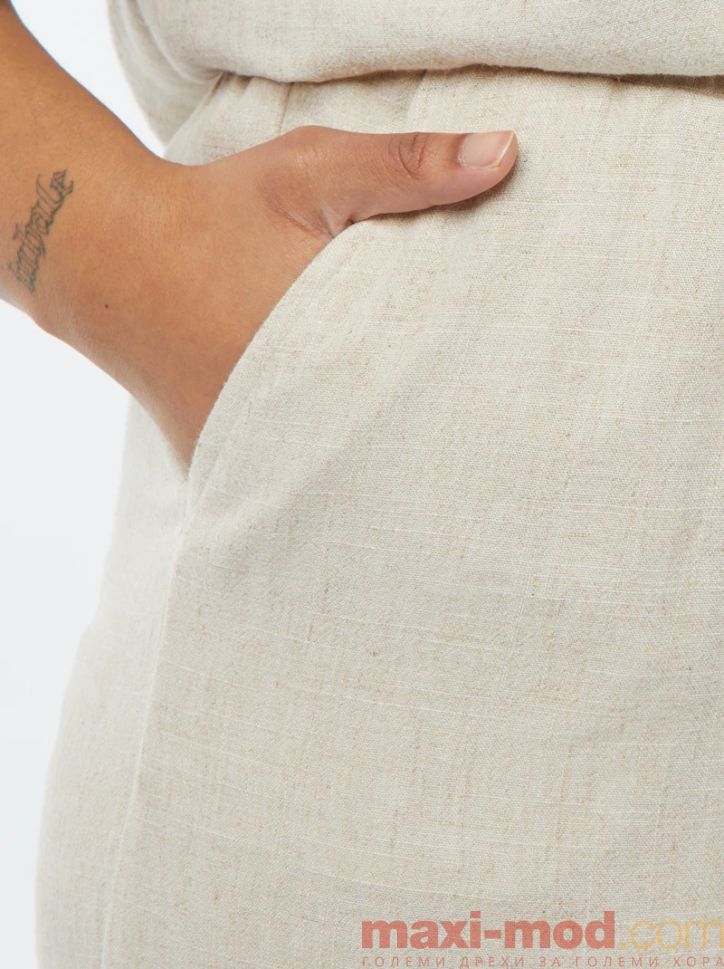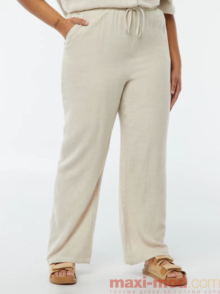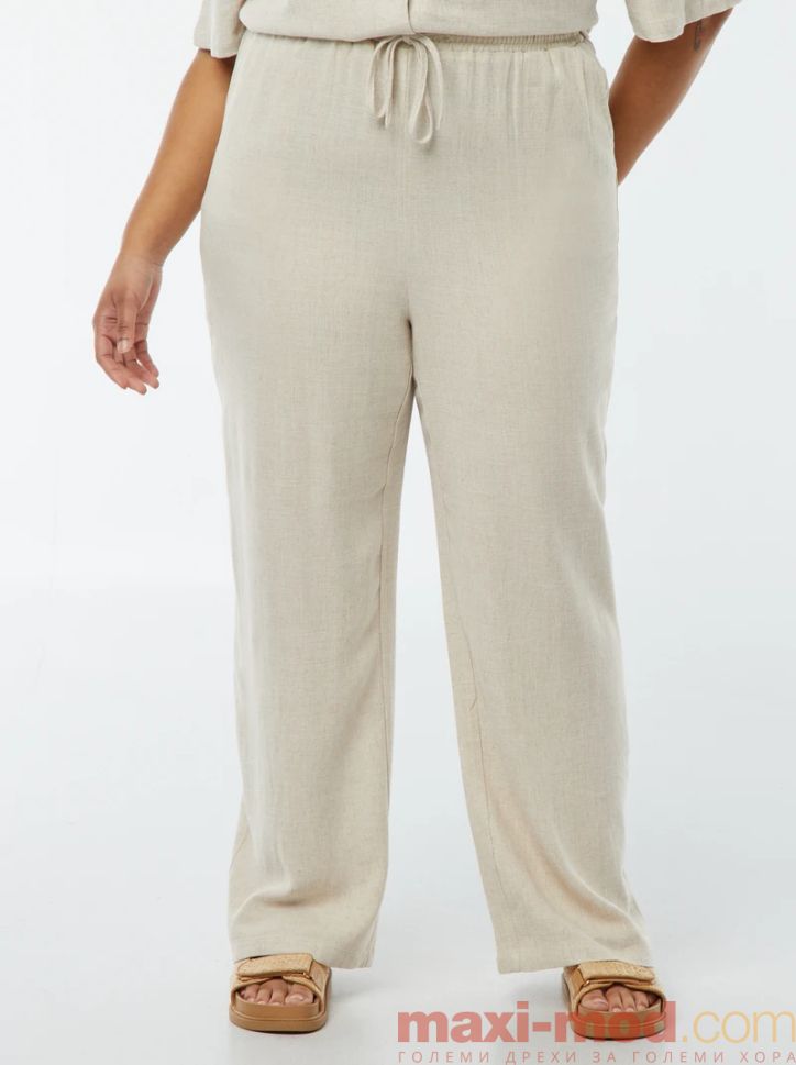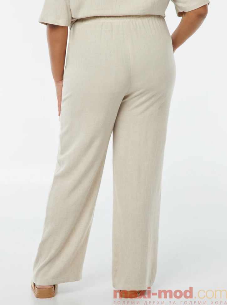 Прав ленен панталон с ластик на талията