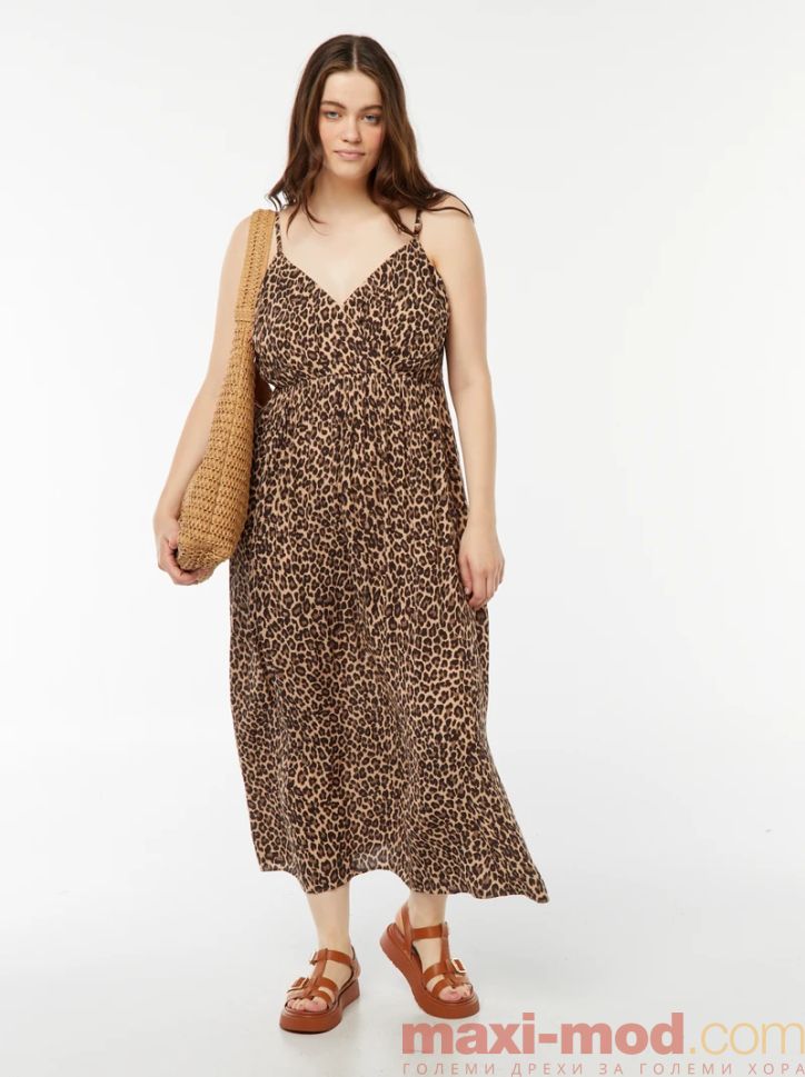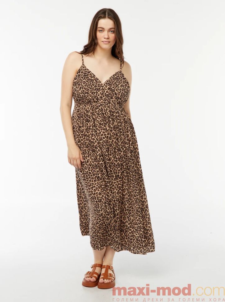 Рокля с креп ефект и тънки презрамки. Подходяща за ежедневието и свободното време.
