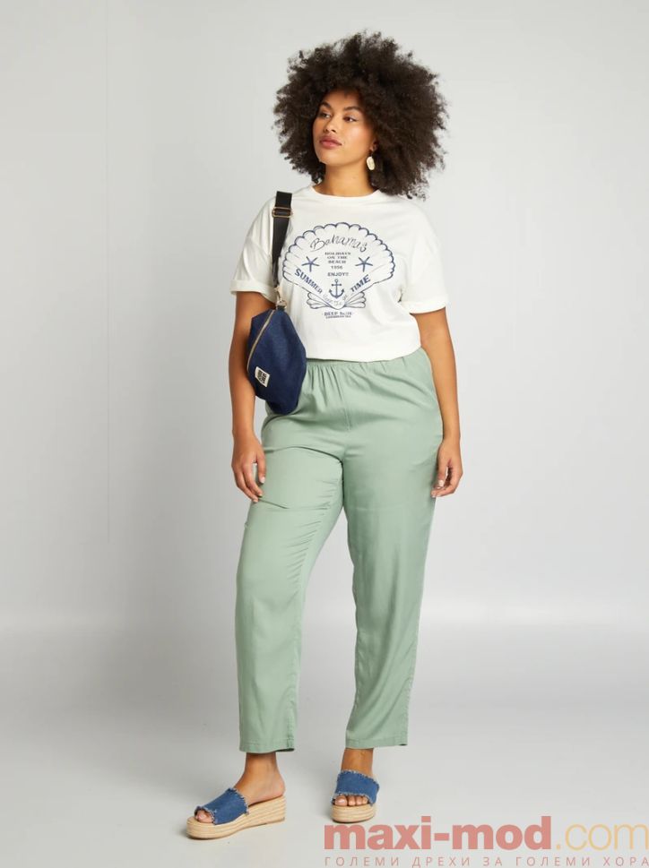 Голям размер дамски лек панталон. Подходяща за ежедневието и свободното време.