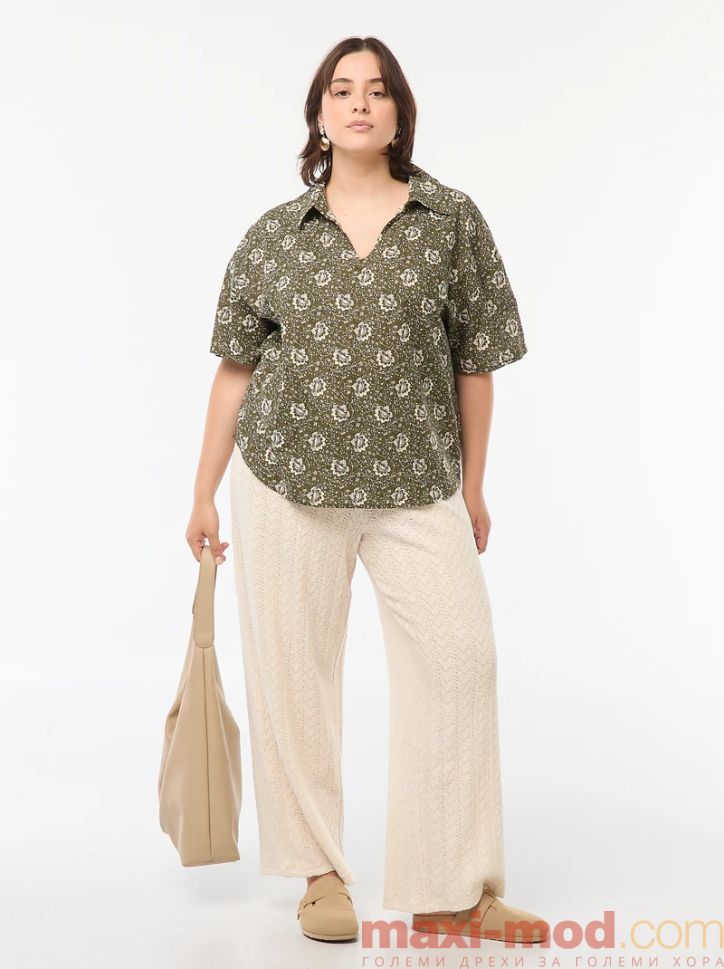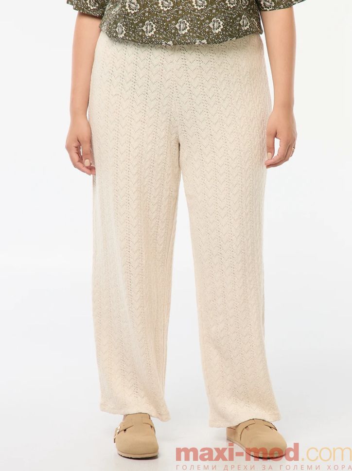 Широки панталони от ажурна материя. Подходящ за ежедневието и свободното време.