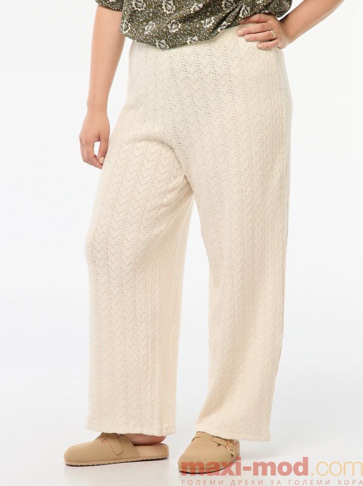 Широки панталони от ажурна материя. Подходяща за ежедневието и свободното време.