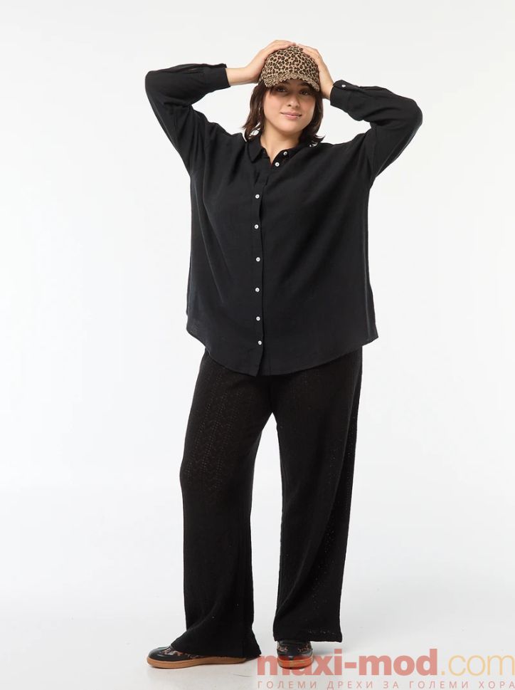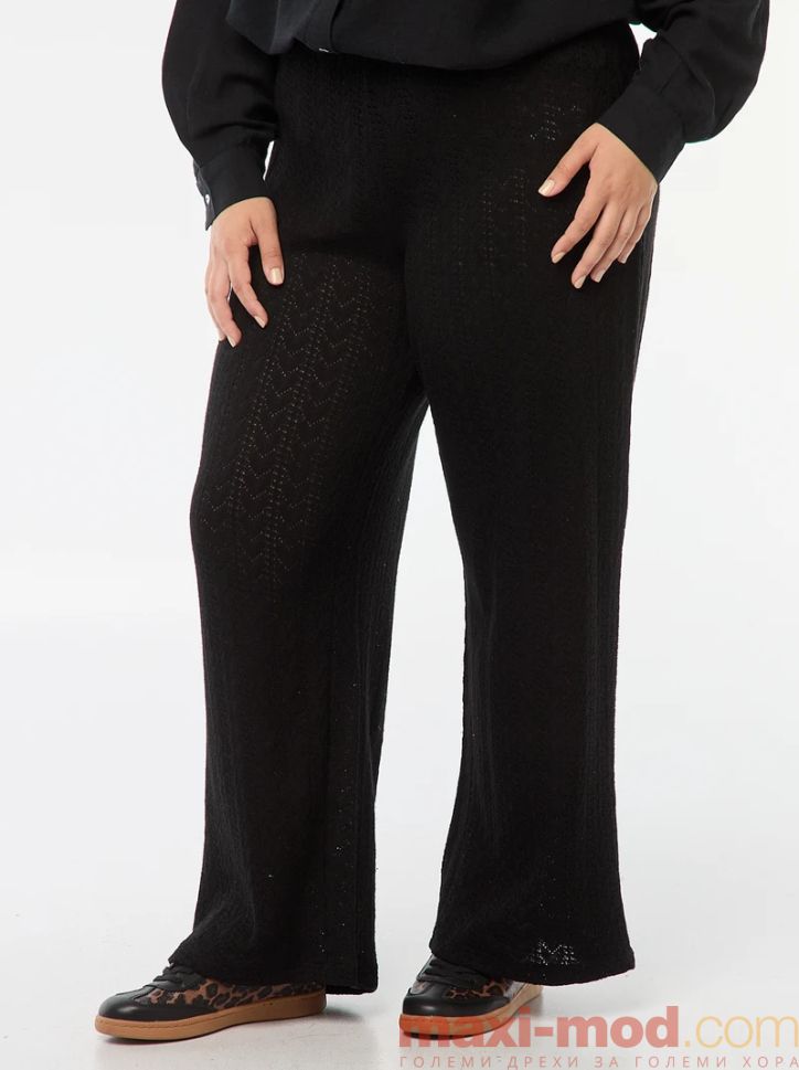 Широки панталони от ажурна материя. Подходящ за ежедневието и свободното време.