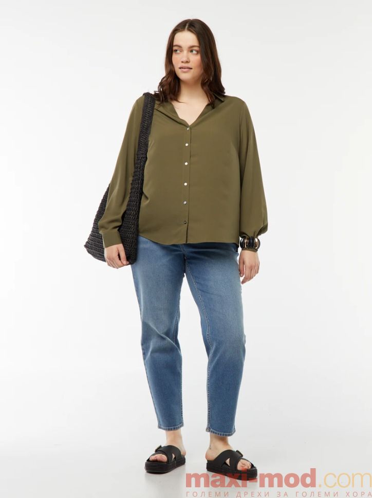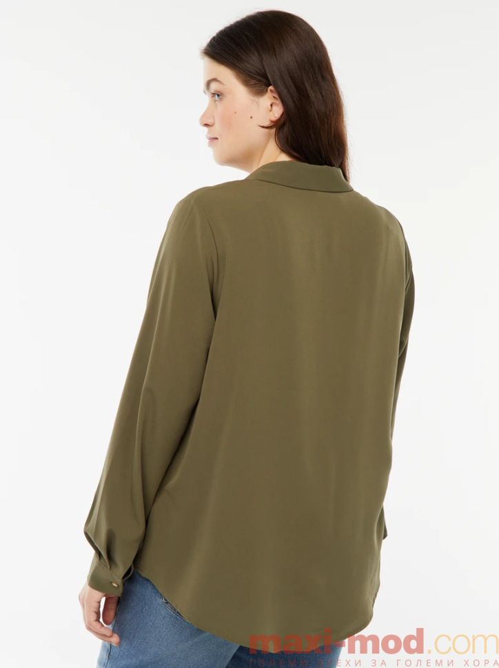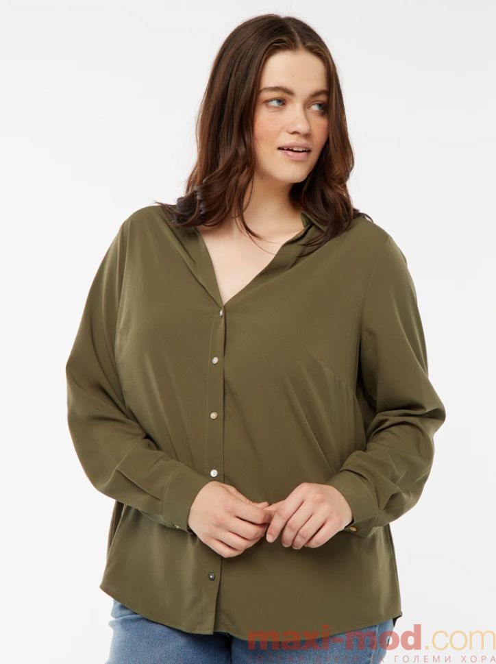 Голям размер дамска риза с креп ефект. Подходяща за ежедневието и свободното време.