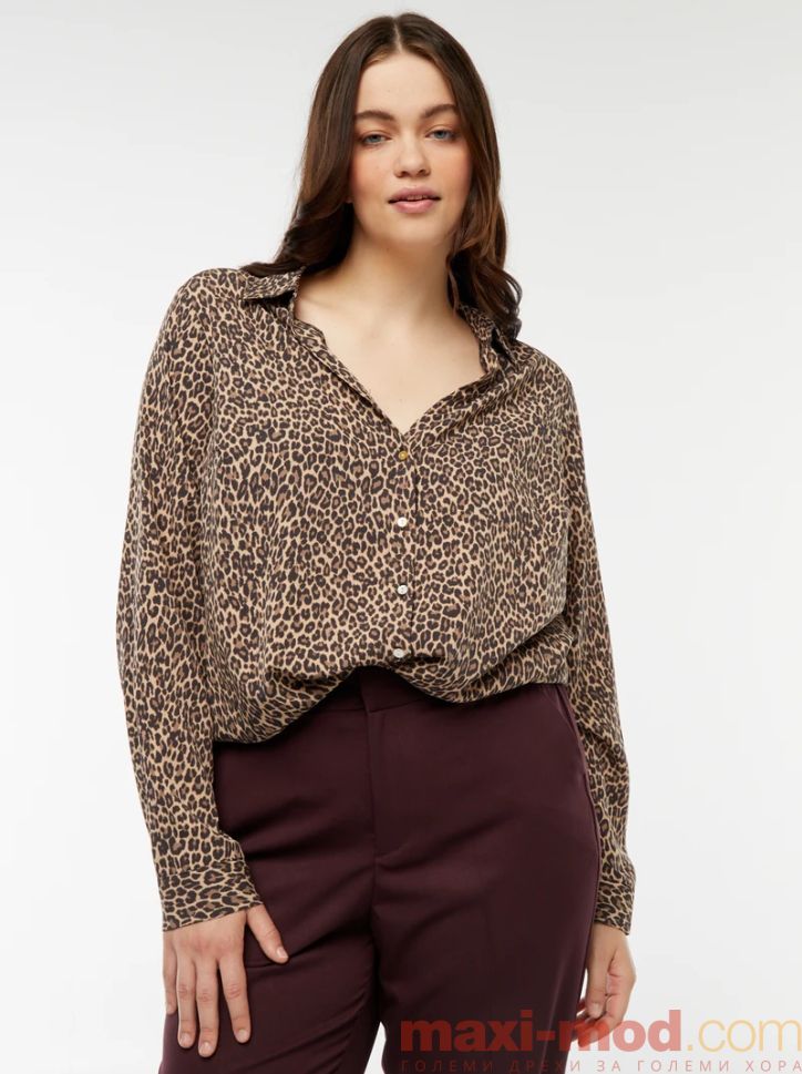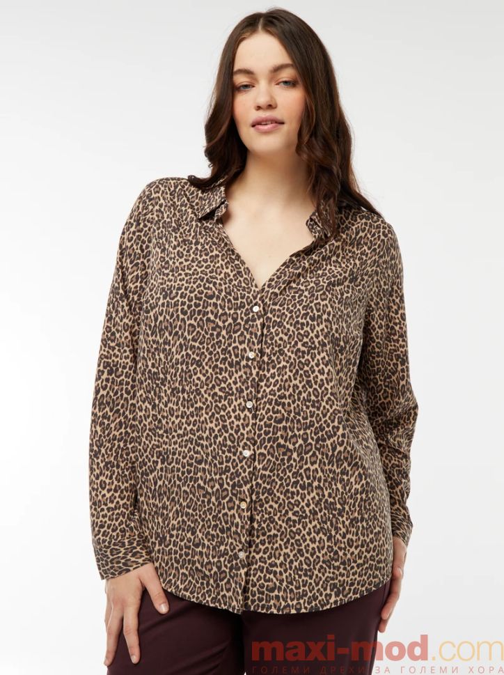 Голям размер дамска риза с креп ефект. Подходяща за ежедневието и свободното време.