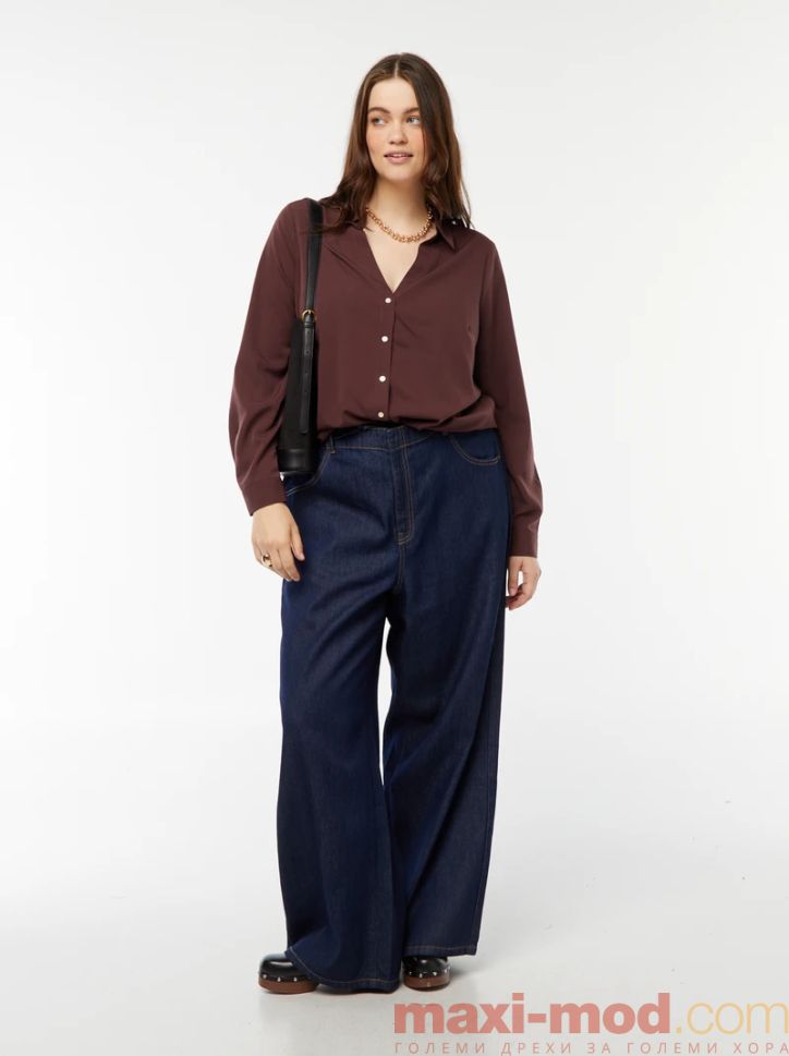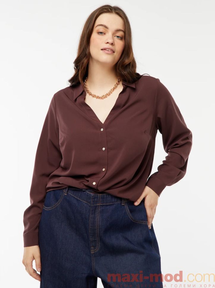 Голям размер дамска риза с креп ефект. Подходяща за ежедневието и свободното време.