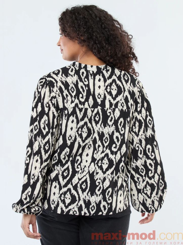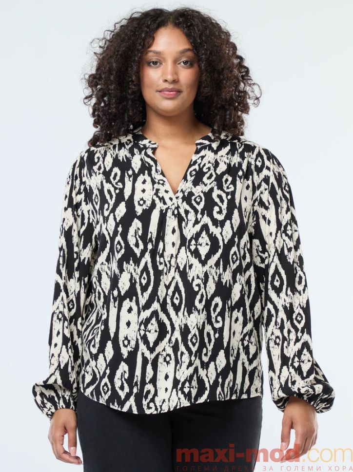 Свободно стояща блуза с мандарин яка. Подходяща за ежедневието и свободното време.