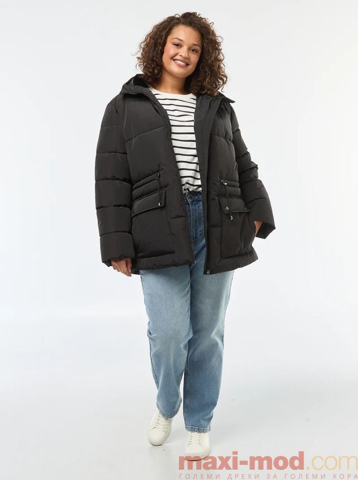 Капитонирано пухено яке със средна дължина. Подходящо за ежедневието и свободното време.