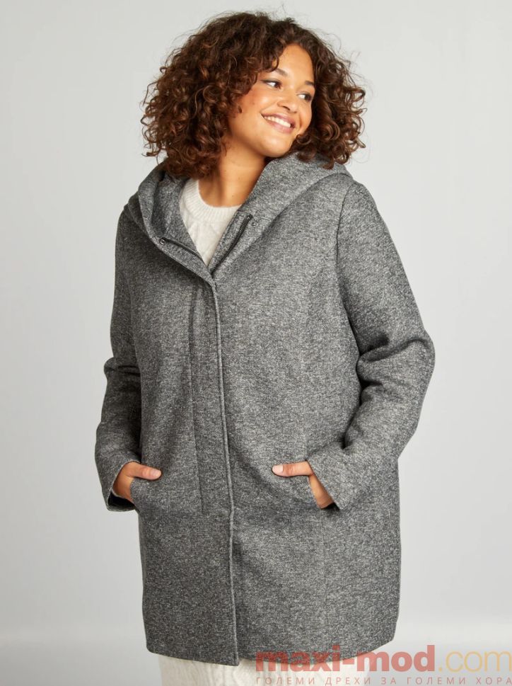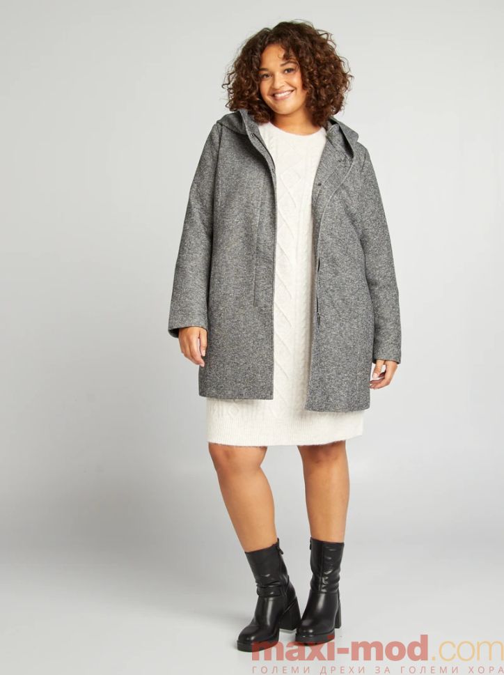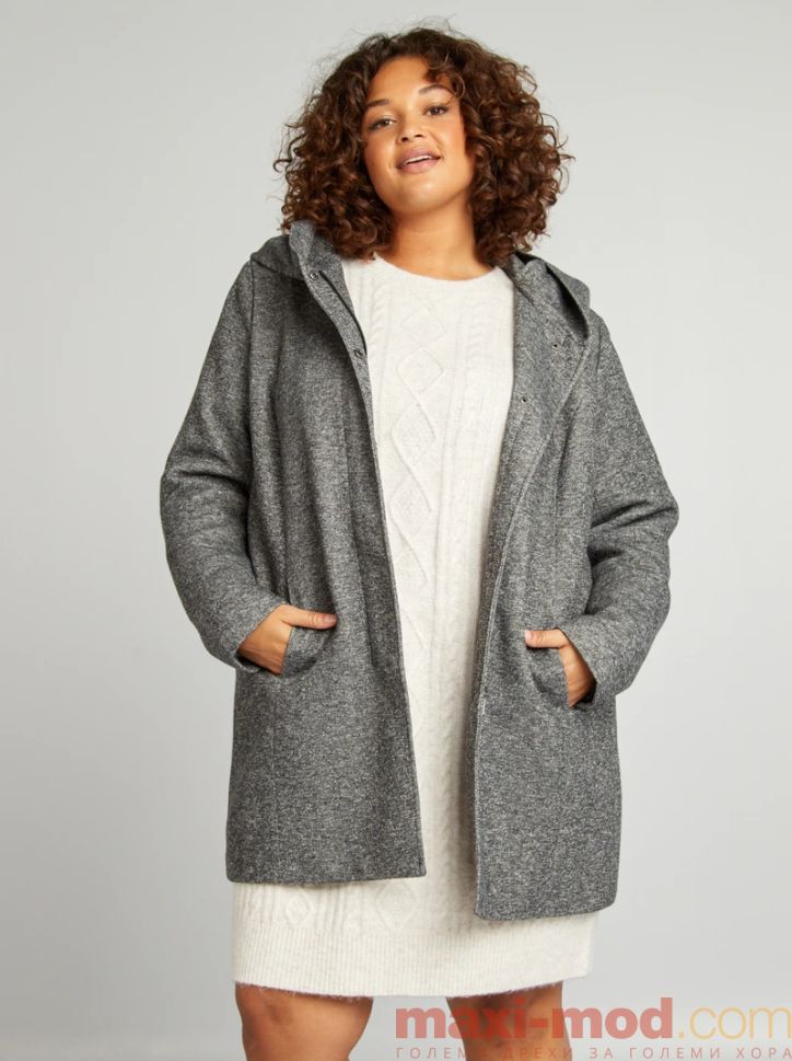 Голям размер дамско палто с качулка