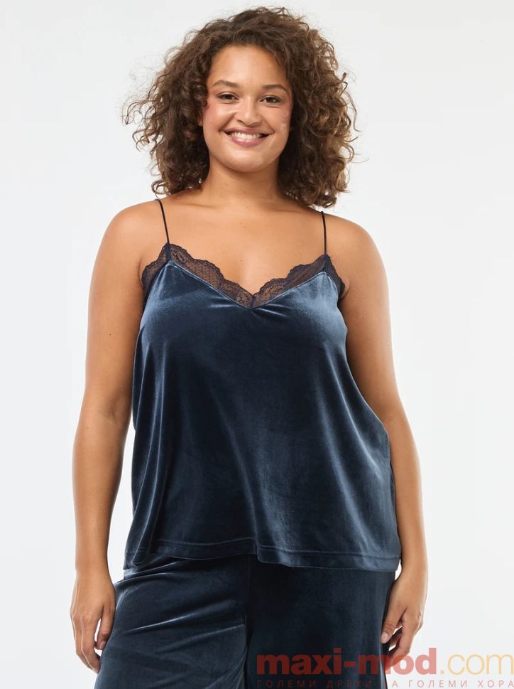 Кадифен потник с дантелен кант