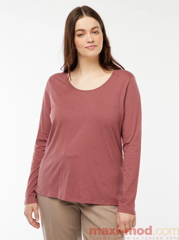 Голям размер тениска с дълъг ръкав от трико. Подходяща за ежедневието и свободното време.