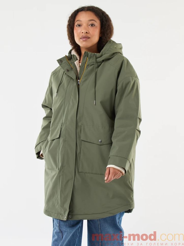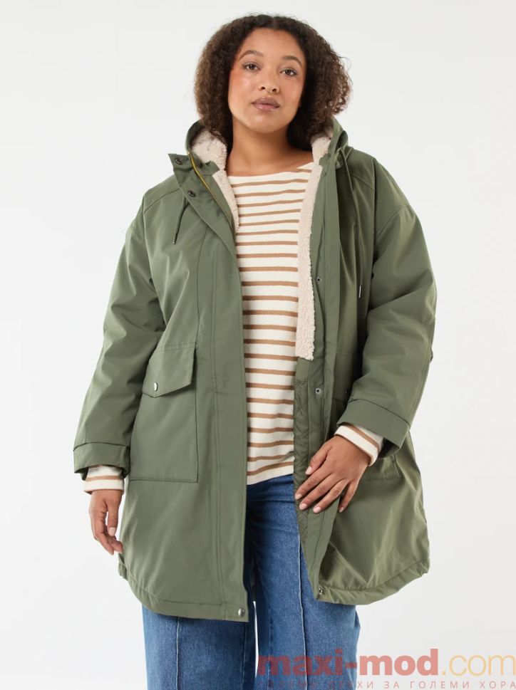 Голям размер дамска парка с подплата. Подходяща за ежедневието и свободното време.
