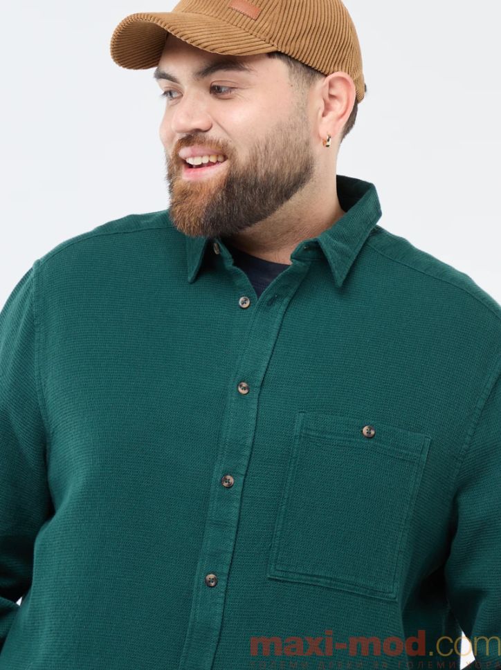 Начало Мъже макси размери Мъжки ризи Едноцветна риза с вафлен ефект