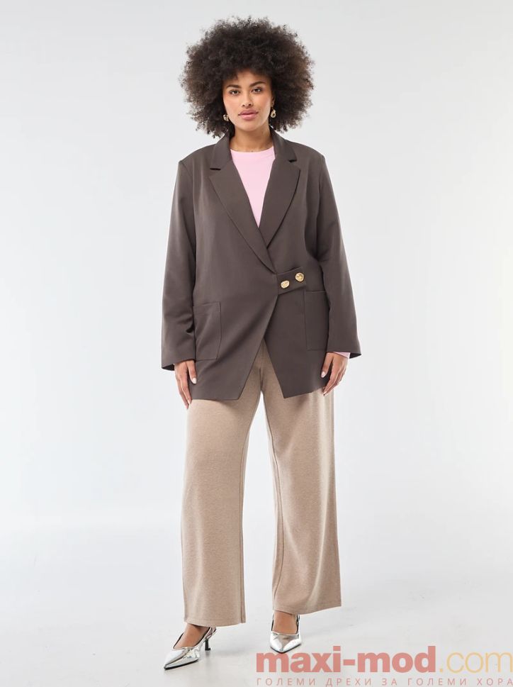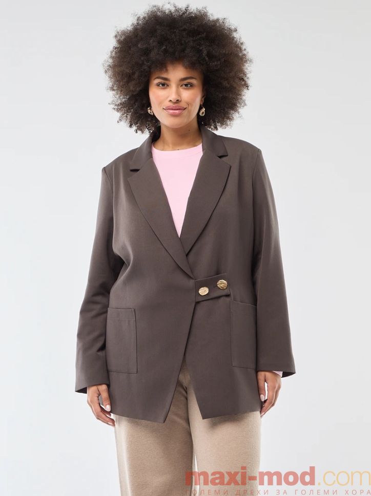 Голям размер дамскo сако овърсайз. Подходящ за ежедневието и свободното време.