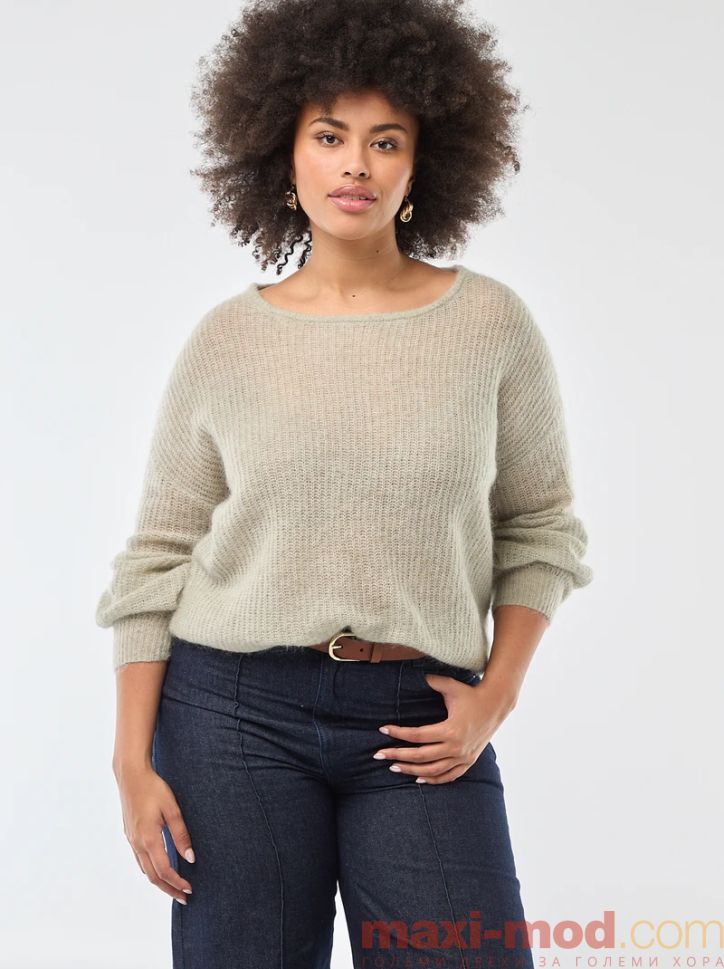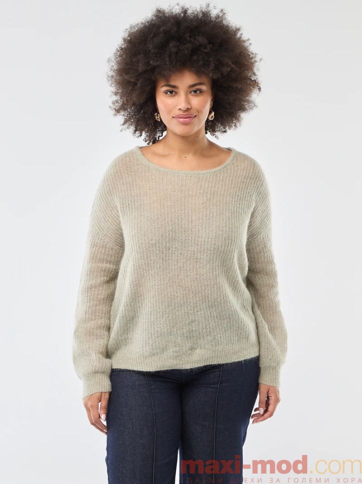 Топъл мохеров пуловер с кръгло деколте. Подходяща за ежедневието и свободното време.