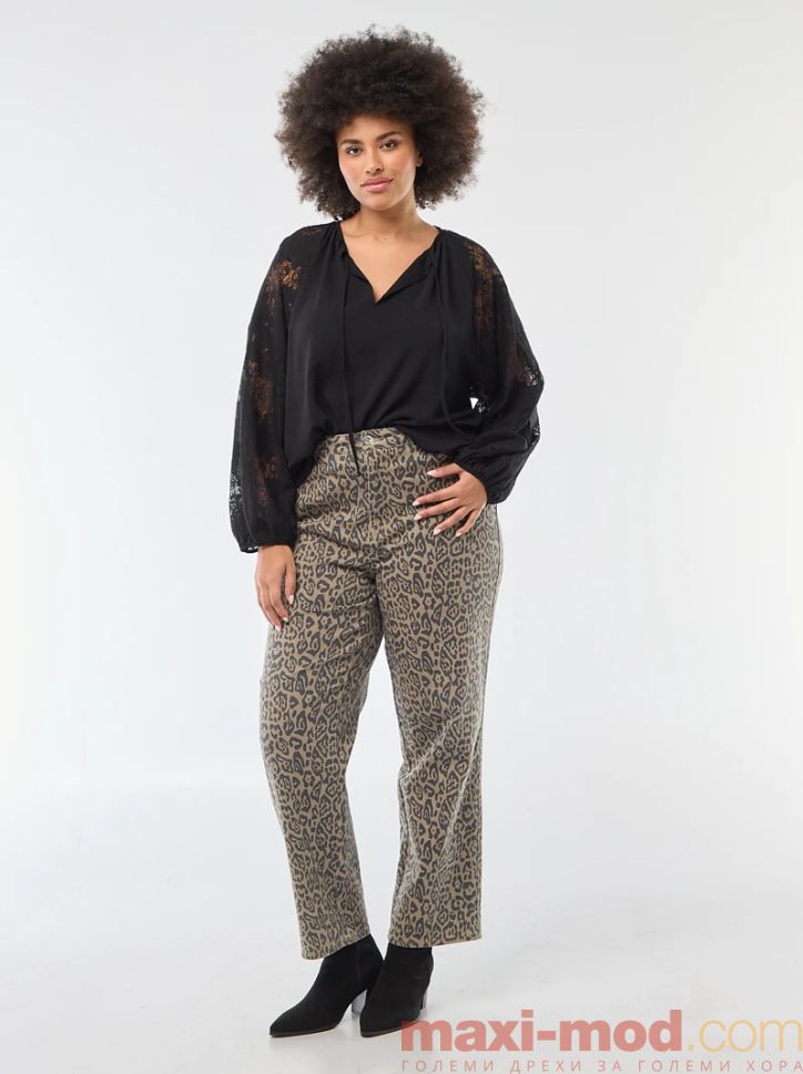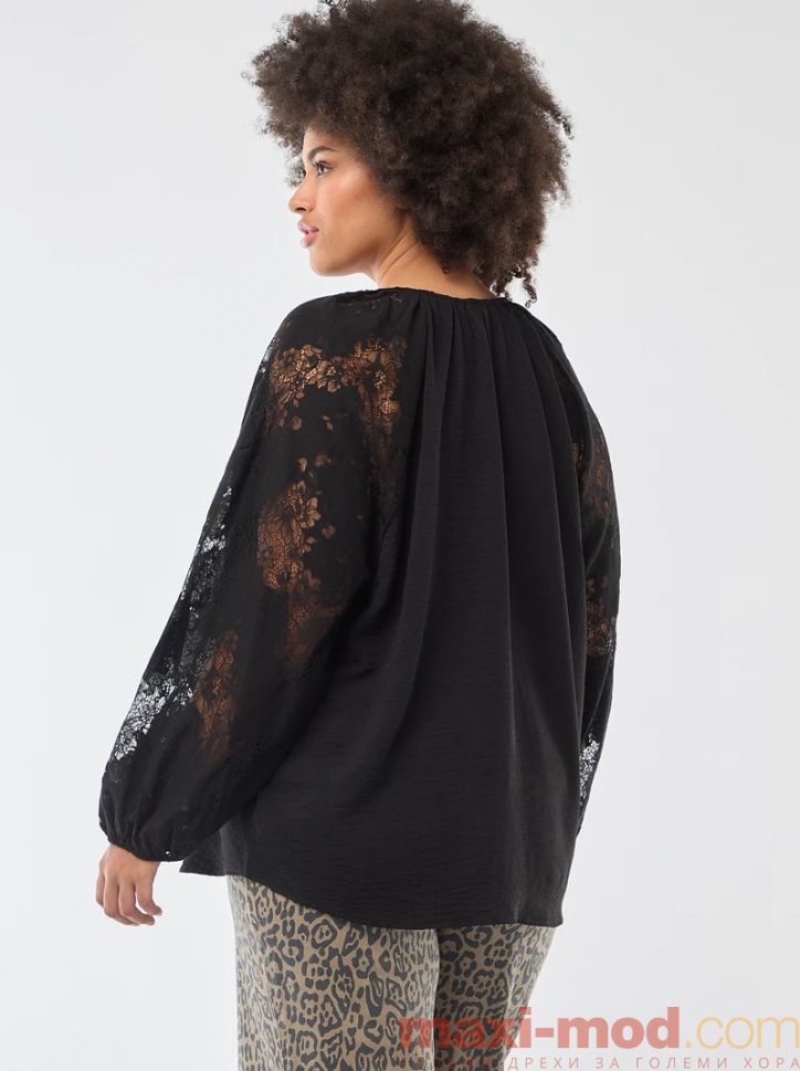 Голям размер дамска блуза с дантелени ръкави. Подходяща за ежедневието и свободното време.