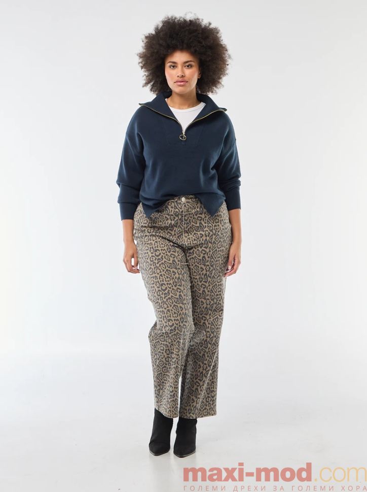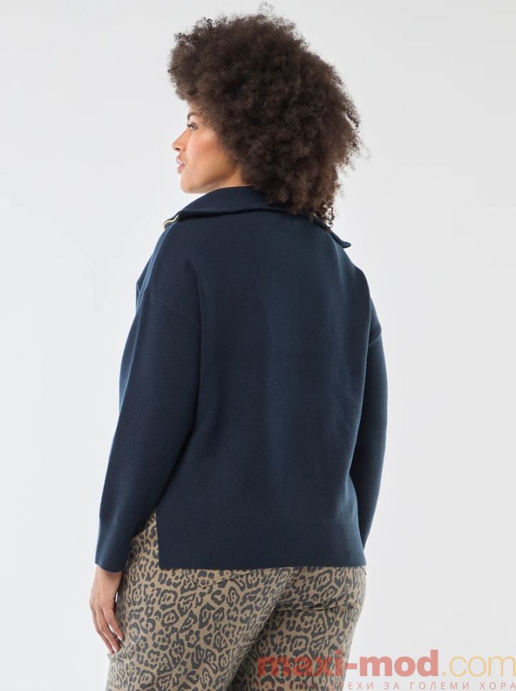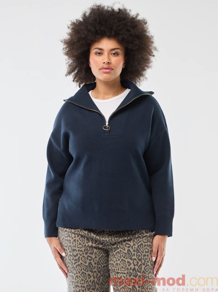 Дамски пуловер с висока яка с цип. Подходяща за ежедневието и свободното време.