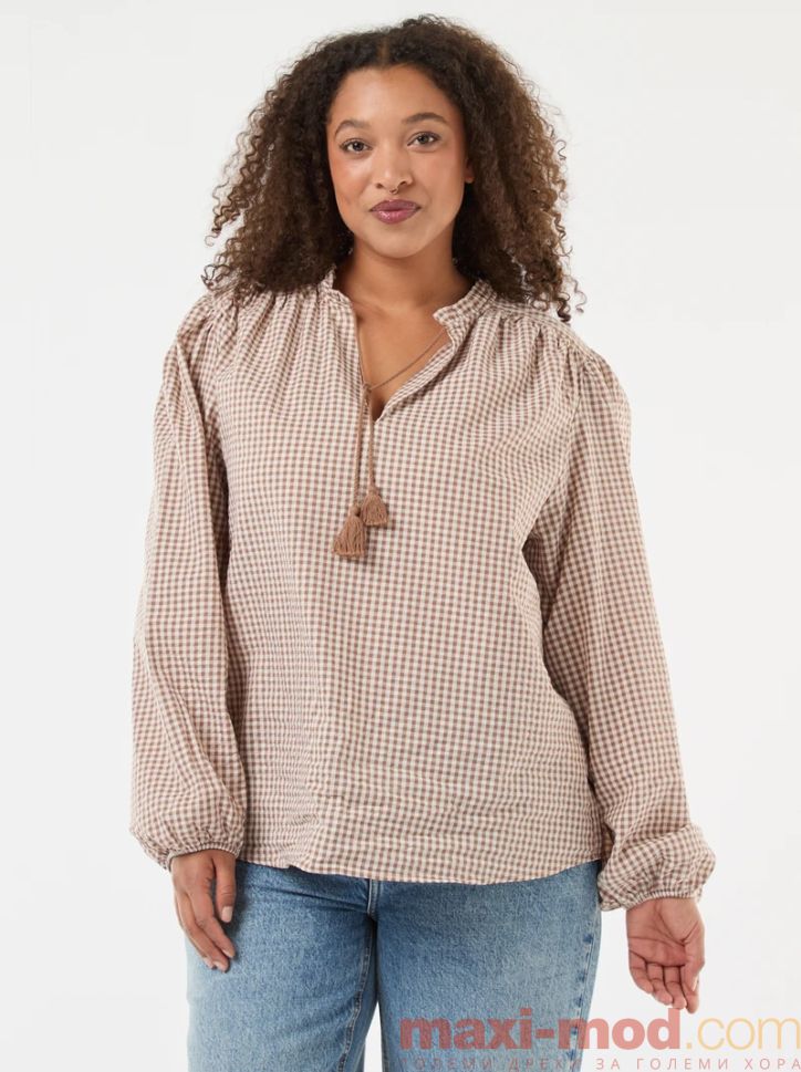 Голям размер дамска блуза с широки ръкави. Подходяща за ежедневието и свободното време.