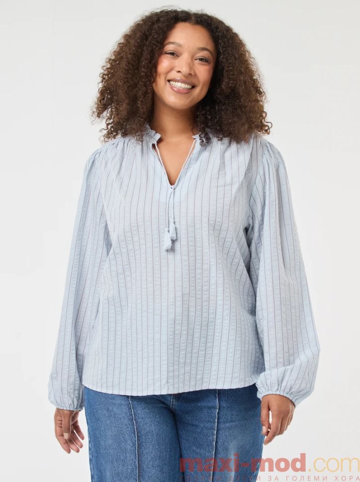 Голям размер дамска блуза с широки ръкави. Подходяща за ежедневието и свободното време.