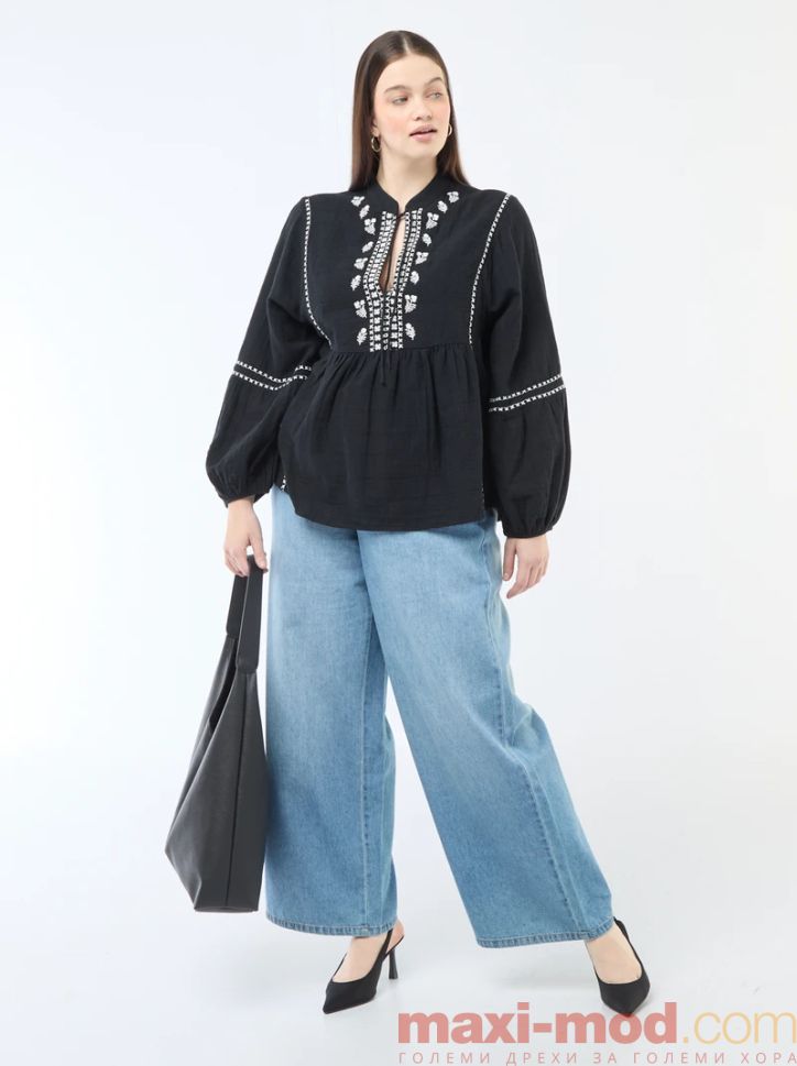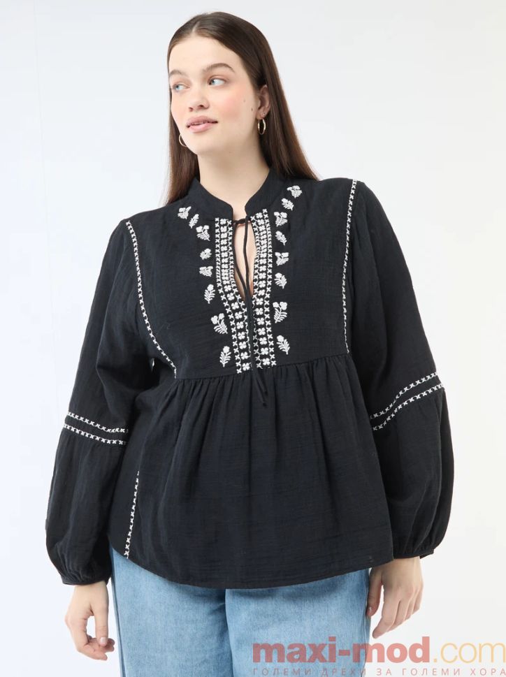 Дамска блуза с бродерия. Подходяща за ежедневието и свободното време.