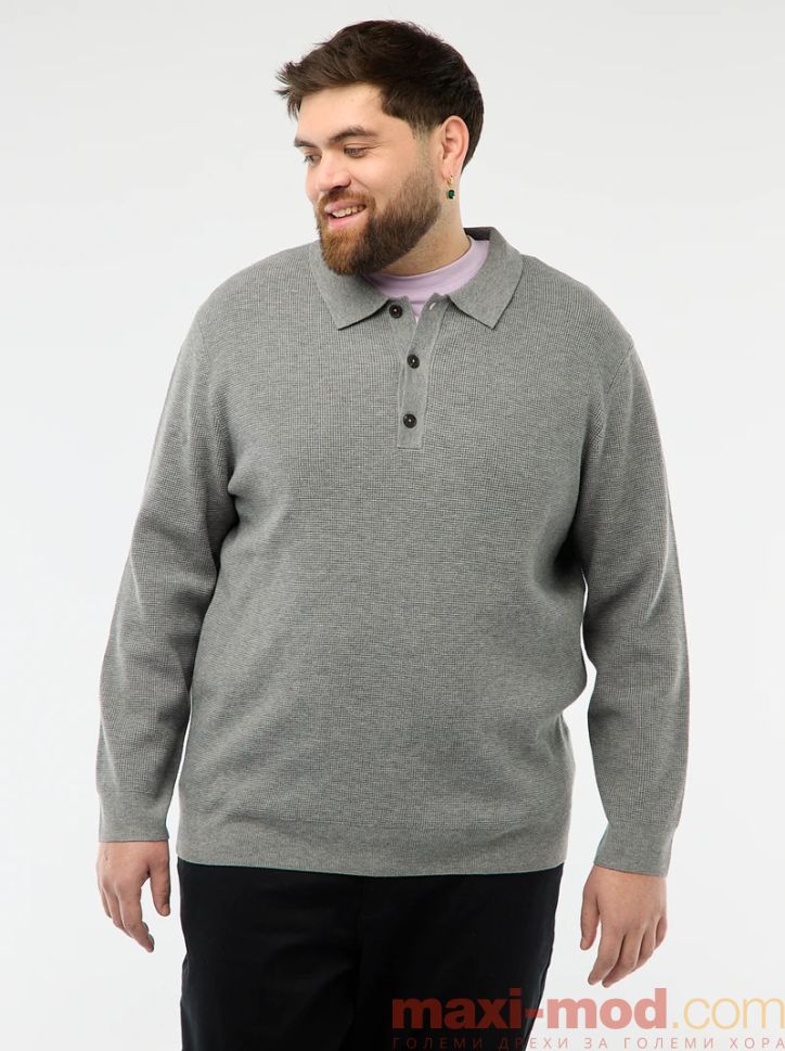 Мъжки пуловер с поло яка. Подходяща за ежедневието и свободното време.