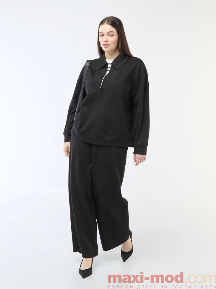 Широки панталони от оребрена еластична материя . Подходяща за ежедневието и свободното време.