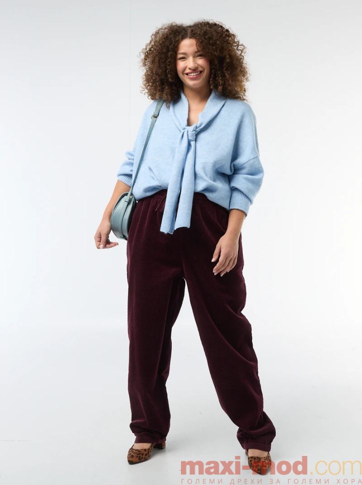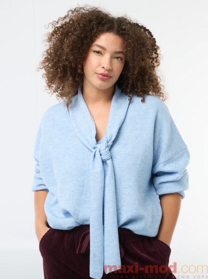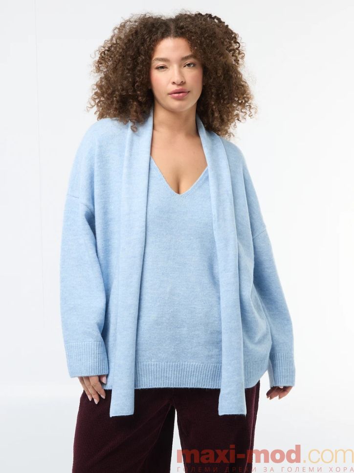 Дамски плетен пуловер с вграден шал . Подходяща за ежедневието и свободното време.