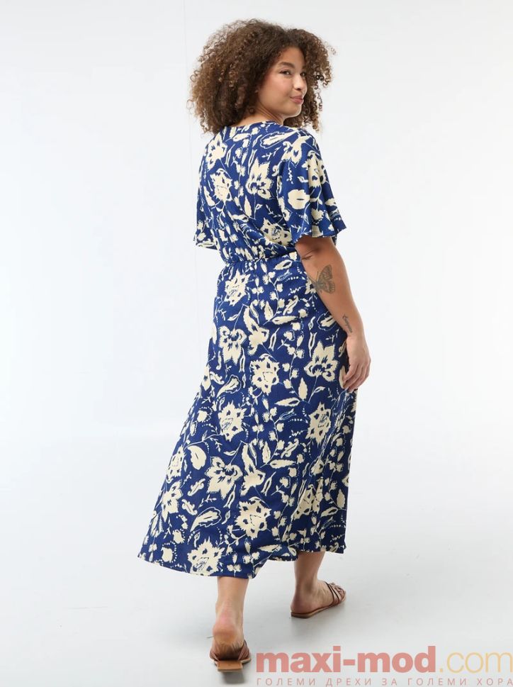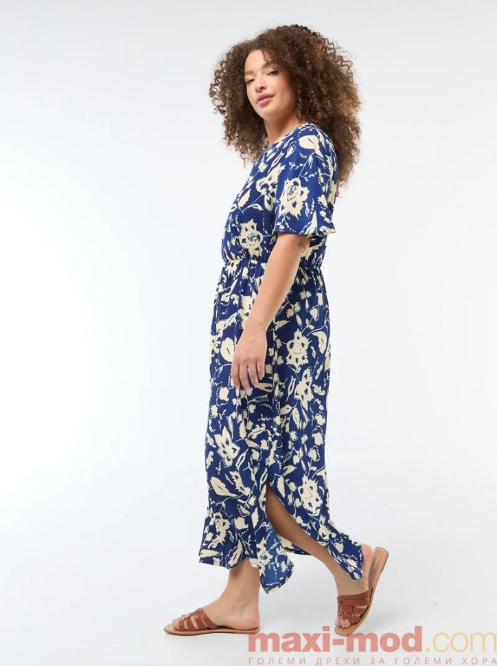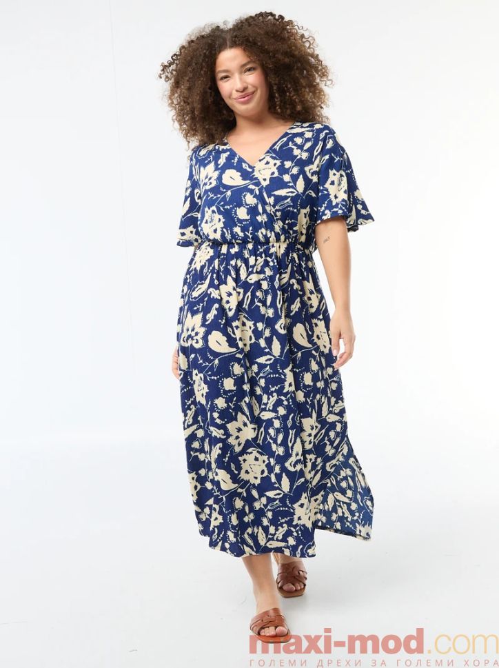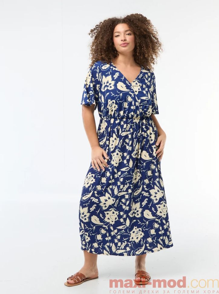 Дълга рокля с V-образно деколте. Подходяща за ежедневието и свободното време.