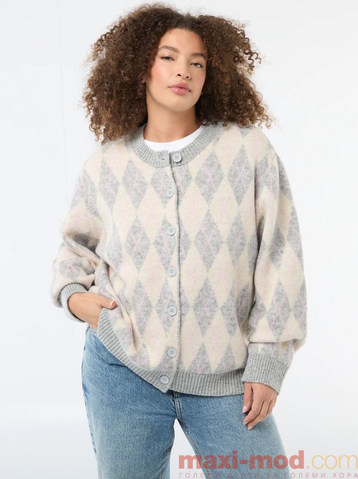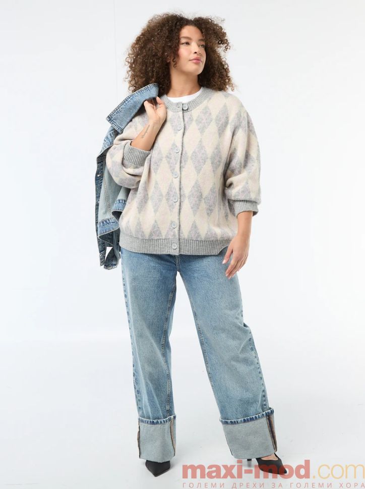 Дамска плетена жилетка голям размер. Подходяща за ежедневието и свободното време.