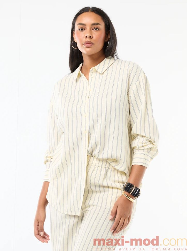 Ефирна риза дълъг ръкав от ленен и памук. Подходяща за ежедневието и свободното време.