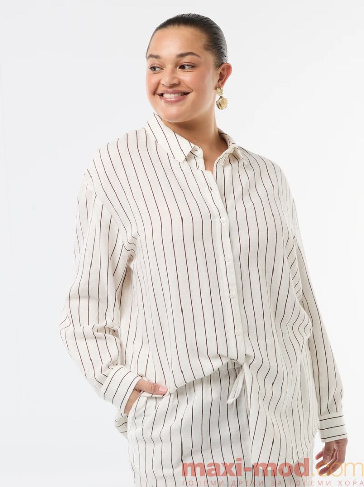 Ефирна риза дълъг ръкав от ленен и памук. Подходяща за ежедневието и свободното време.