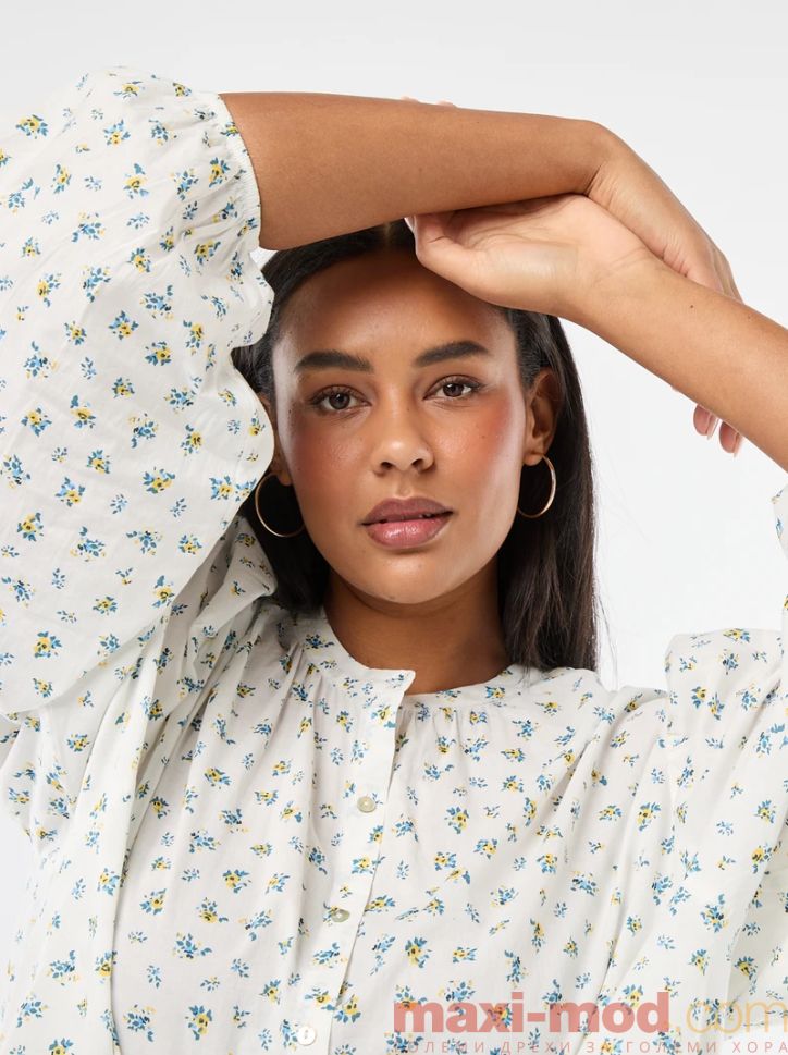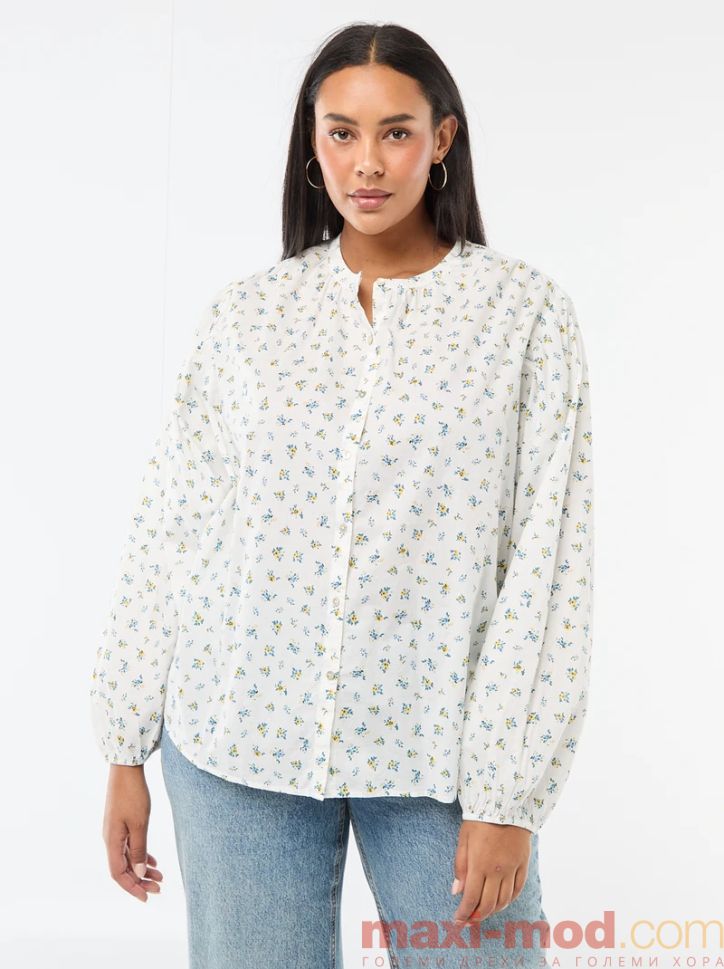 Дамска риза с кръгло деколте и дълъг ръкав. Подходяща за ежедневието и свободното време.
