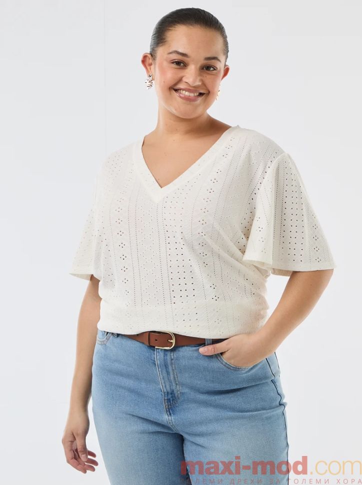 Начало Жени Големи Размери Тениски, туники, потници Дамска блуза с перфорирана плетка