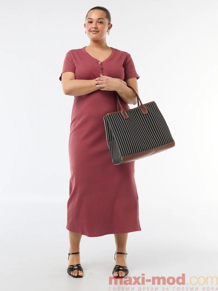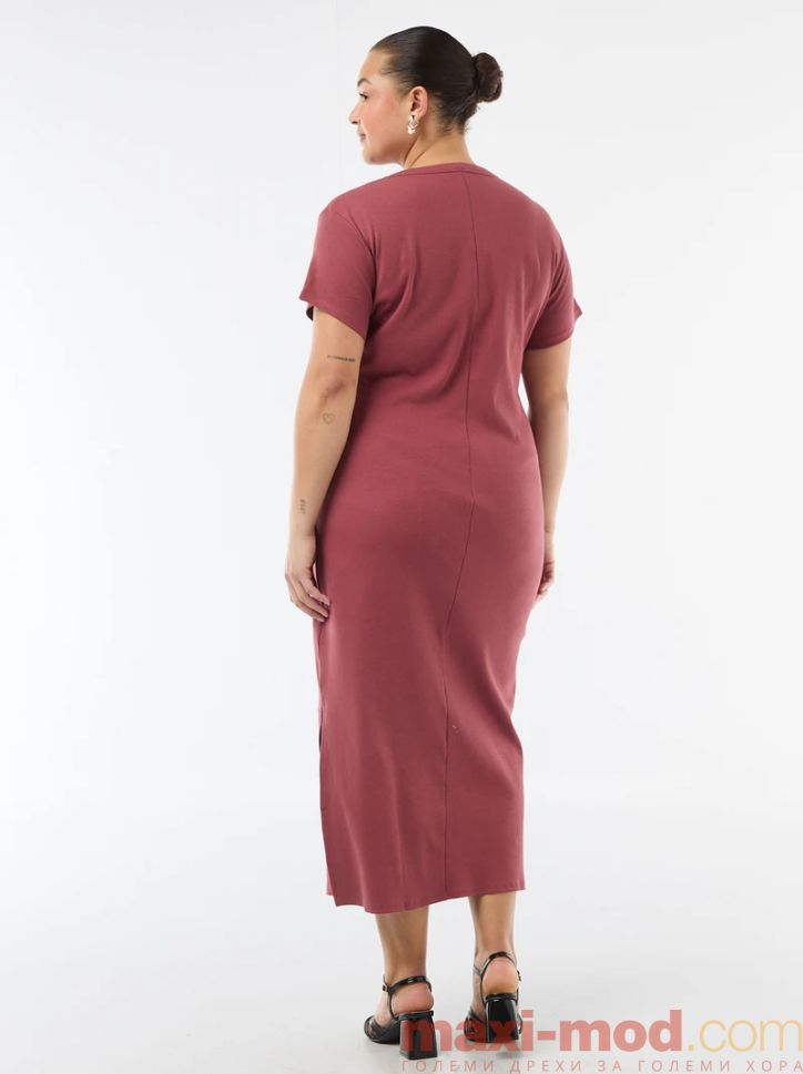 Дълга оребрена рокля с къси ръкави. Подходяща за ежедневието и свободното време.