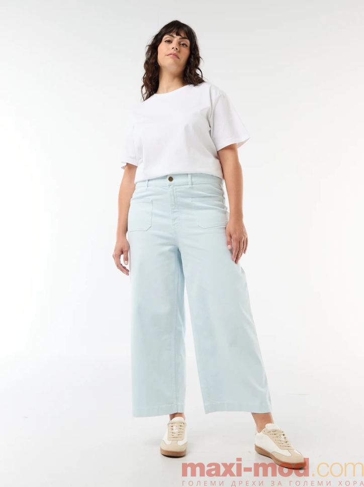 Широки дамски панталони със средна талия. Подходящ за ежедневието и свободното време.