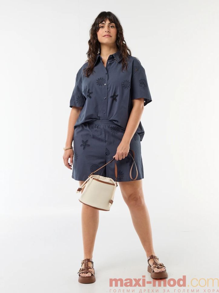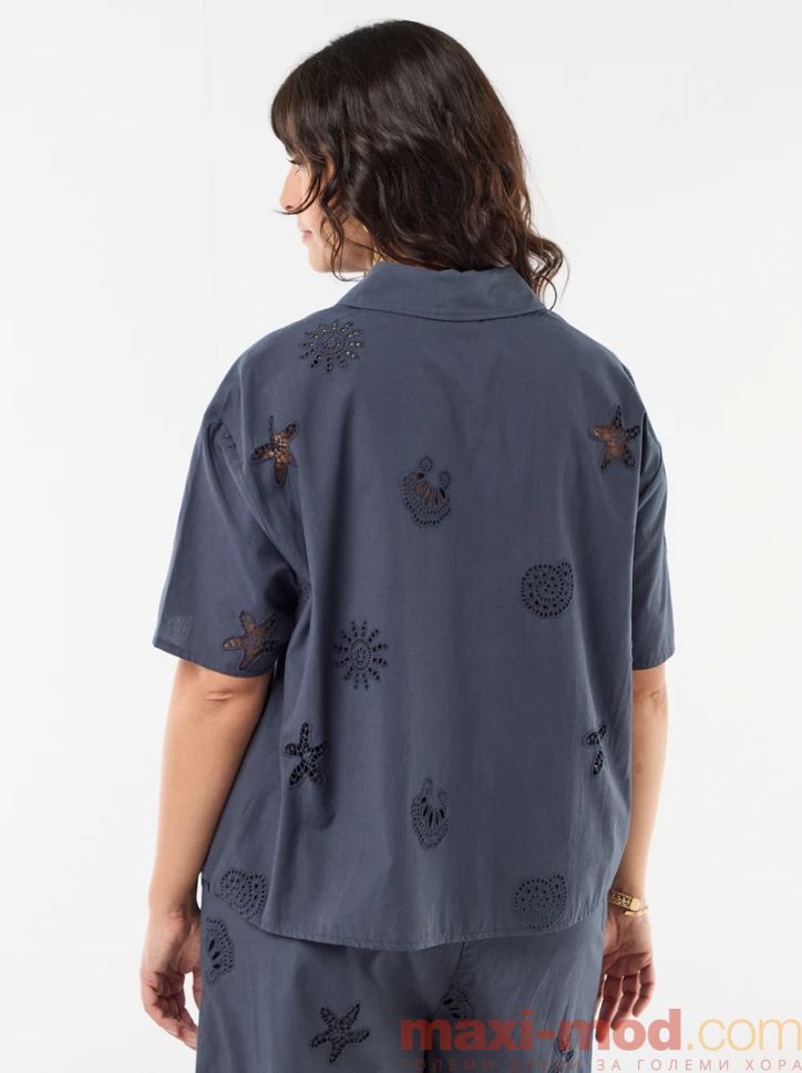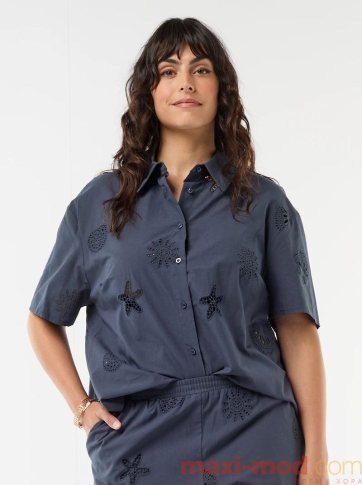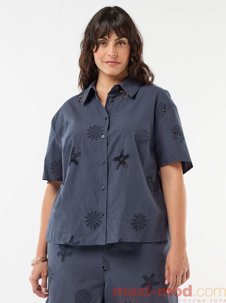 Памучна риза с ажурен мотив. Подходяща за ежедневието и свободното време.
