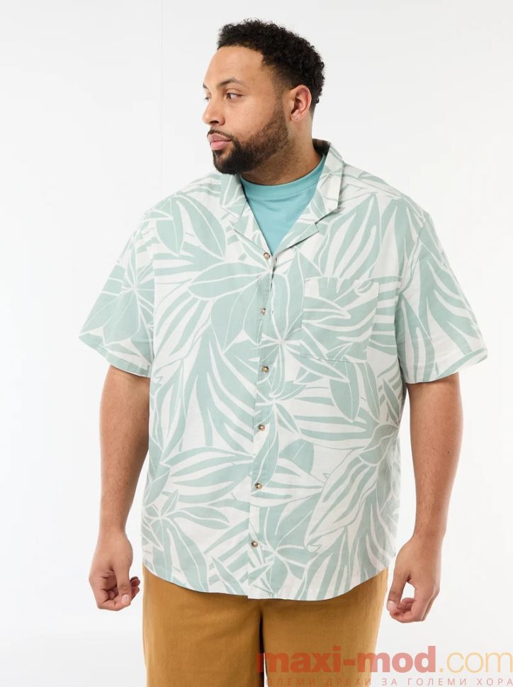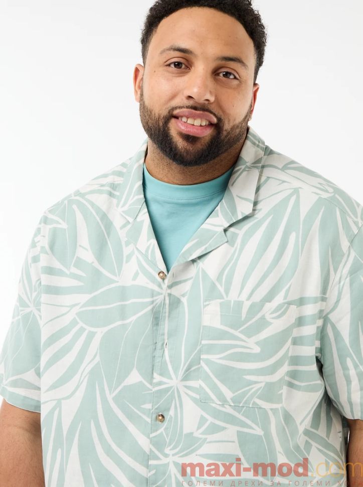 Мъжка ленена риза с къс ръкав макси размер. Подходяща за ежедневието и свободното време.