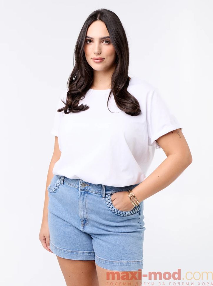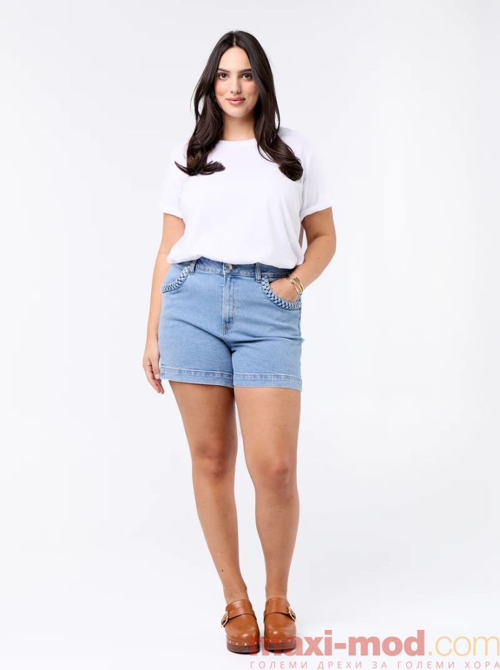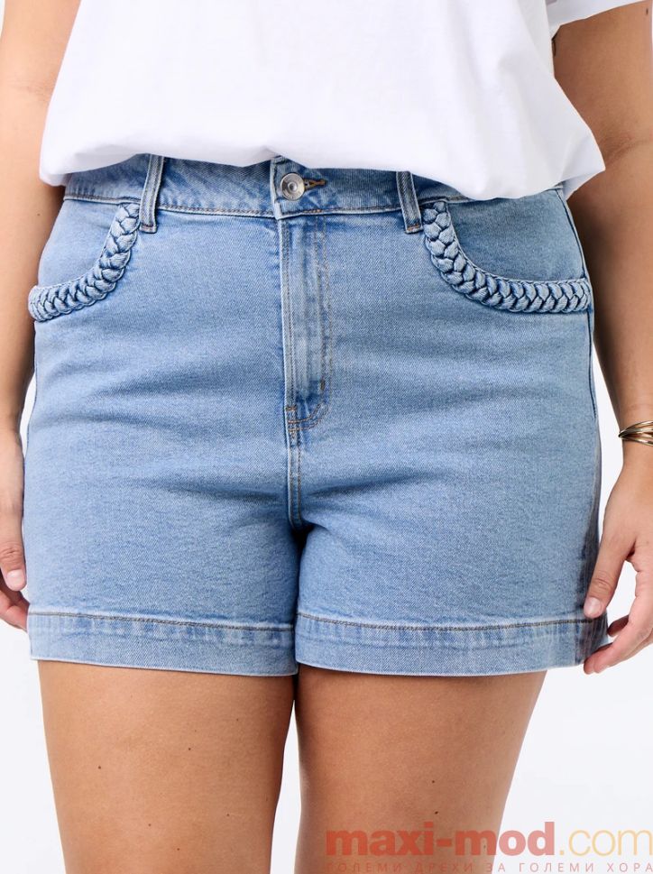 Дънкови шорти с плетени джобове. Подходящи за ежедневието и свободното време.