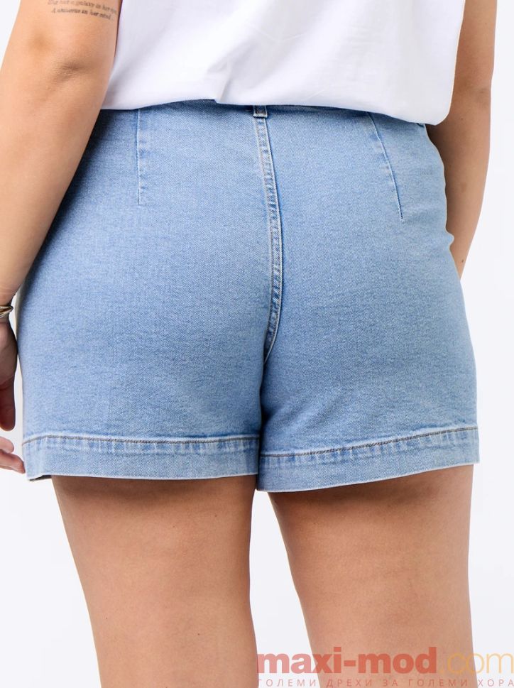 Къси дамски дънки с висока талияДънкови шорти с плетени джобове