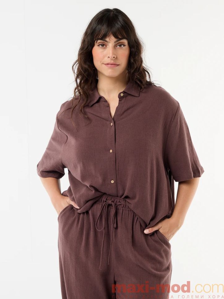Дамска ленена риза с къс ръкав. Подходяща за ежедневието и свободното време.
