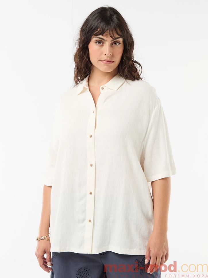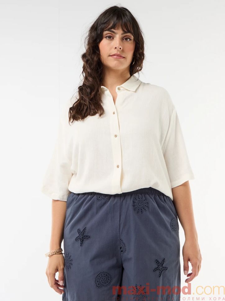 Дамска ленена риза с къс ръкав